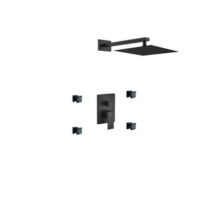 Kube Bath Aqua Piazza Black Shower Set With 12" Square Rain Shower and 4 Body Jets