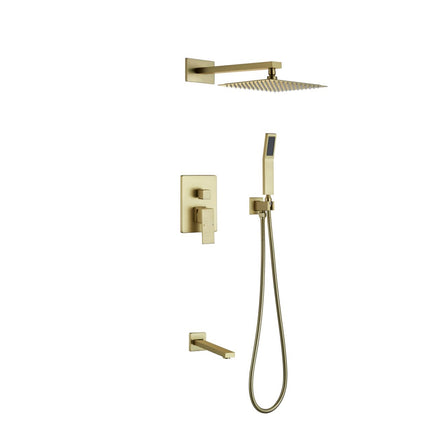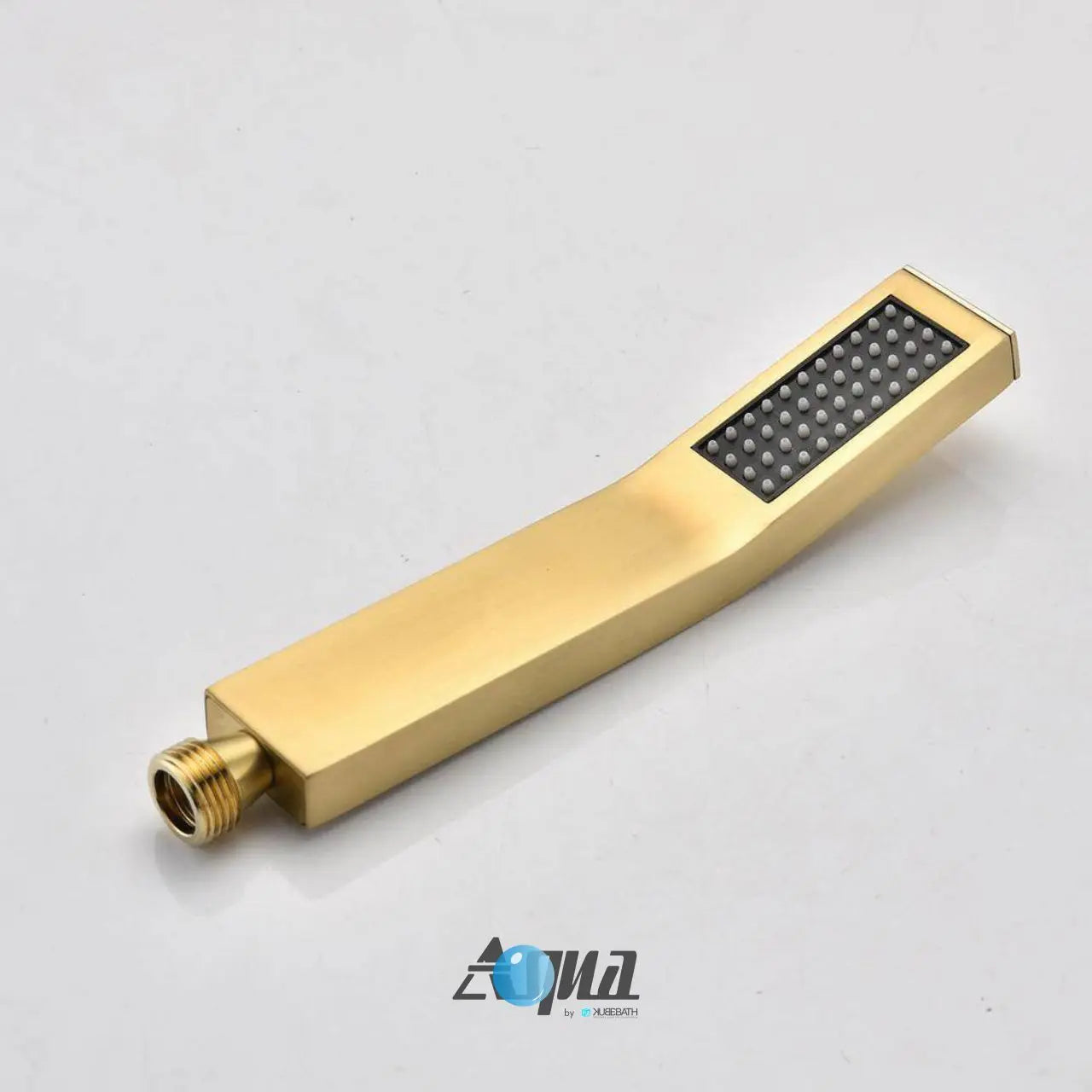 AQUA PIAZZA 8″ RAIN SHOWER HEAD W/ HANDHELD AND TUB FILLER – BRUSHED GOLD FINISH