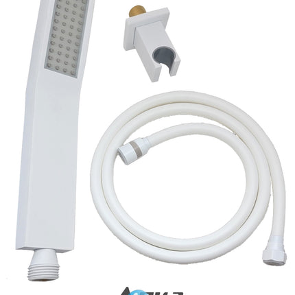AQUA PIAZZA CEILING MOUNT 12“ RAIN SHOWER HEAD W/ HANDHELD – MATTE WHITE FINISH
