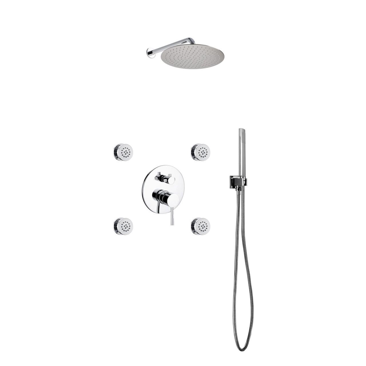 Kube Bath Aqua Rondo Chrome Brass Shower Set With 12" Round Rain Shower, 4 Body Jets and Handheld