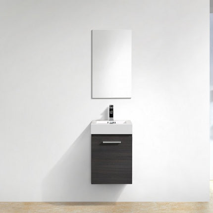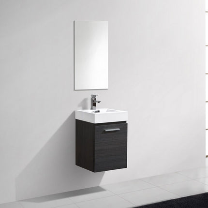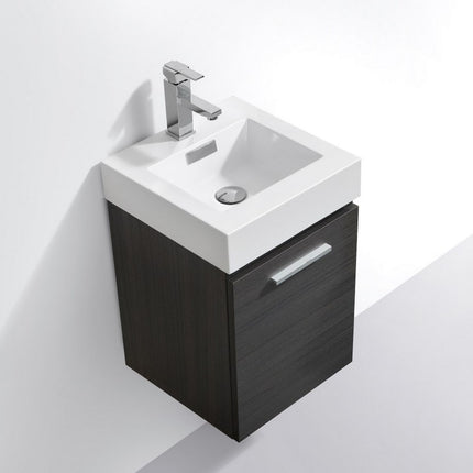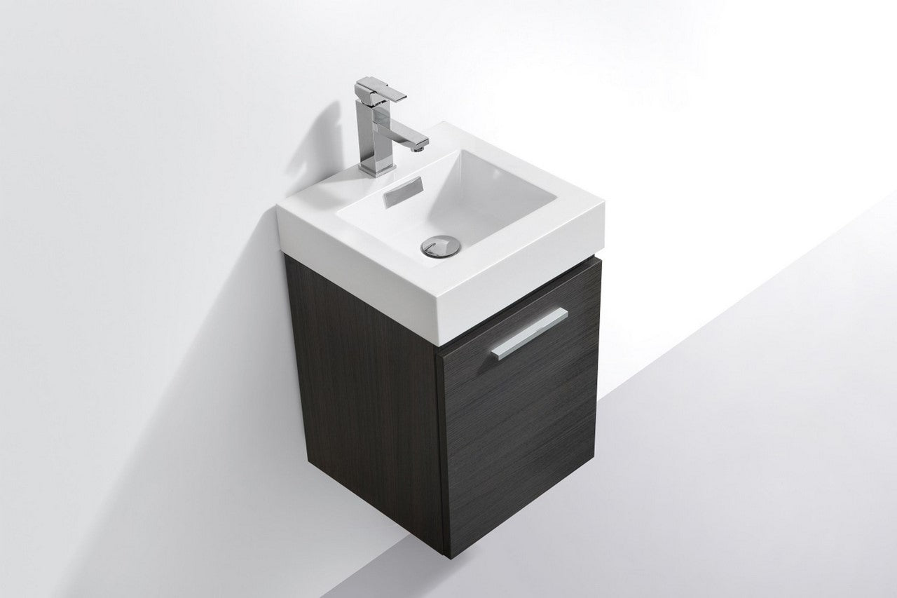 Kube Bath Bliss 16″ High Gloss Gray Oak Wall Mount Modern Bathroom Vanity Innovative design and economical in size makes this vanity ideal for any smaller location. Available in various finishes ensures that regardless the color scheme at hand, anyone is sure to complete their space with guaranteed cutting contemporary chicness.