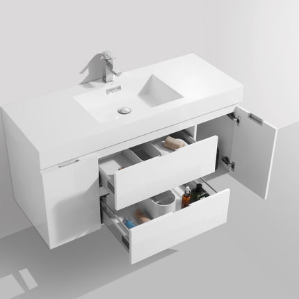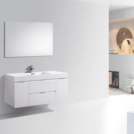 Kube Bath Bliss 48″ High Gloss White Wall Mount Modern Bathroom Vanity