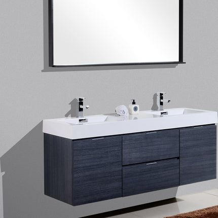 Kube Bath Bliss 60″ Gray Oak Wall Mount Double Sink Modern Bathroom Vanity
