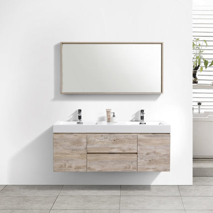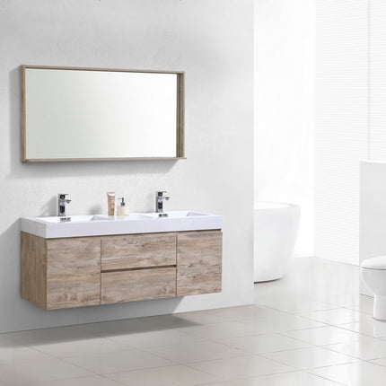 Kube Bath Bliss 60″ Nature Wood Wall Mount Double Sink Modern Bathroom Vanity