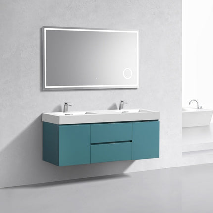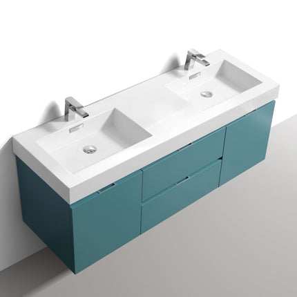 Kube Bath Bliss 60″ Turquoise Green Wall Mount Double Sink Modern Bathroom Vanity