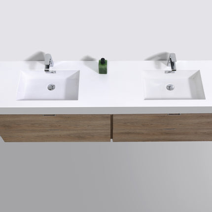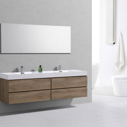 Kube Bath Bliss 72″ Butternut Wall Mount Double Sink Modern Bathroom Vanity