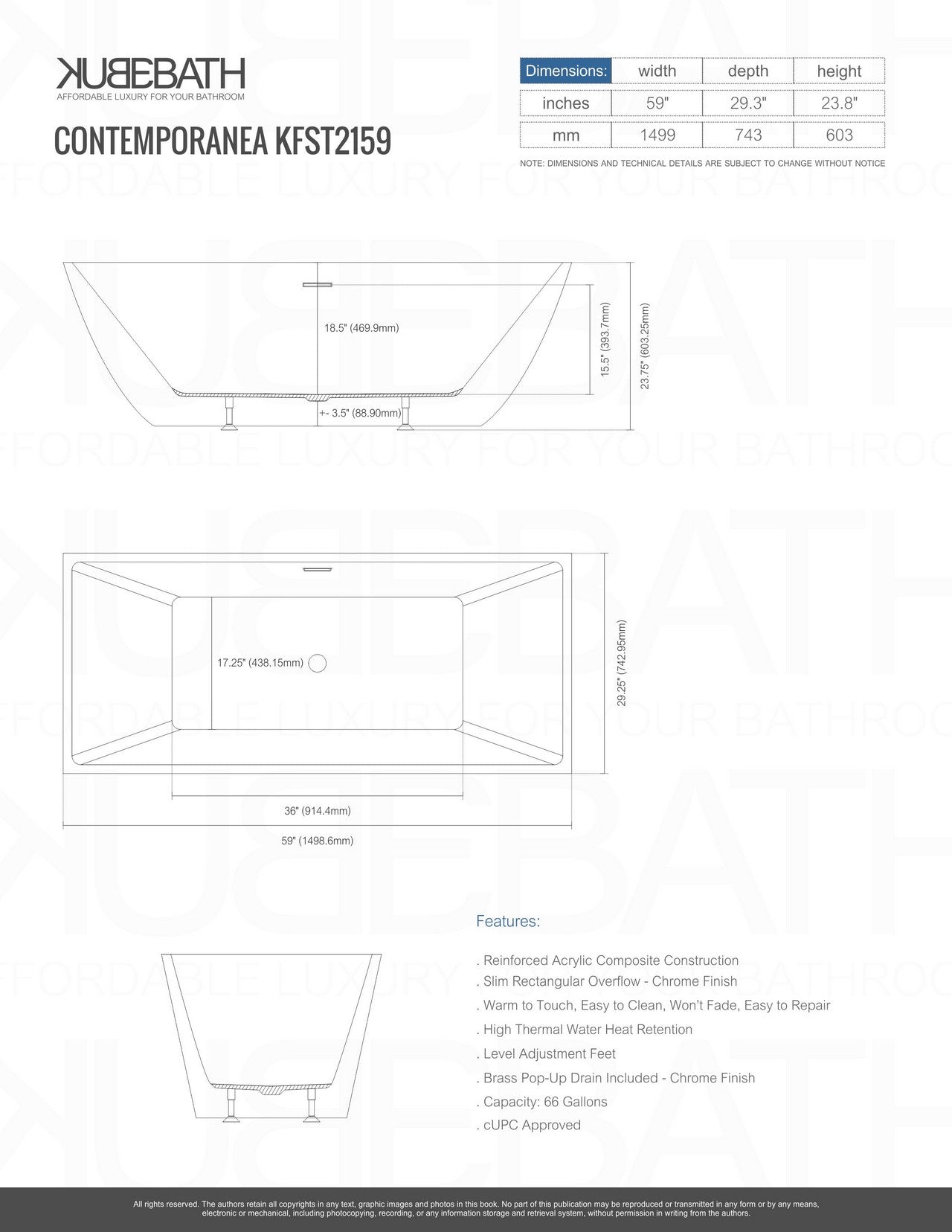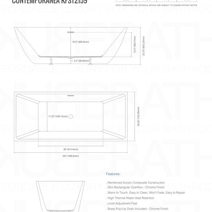 Kube Bath Contemporanea 59 Inch Free Standing Bathtub
