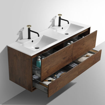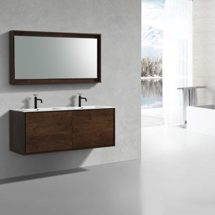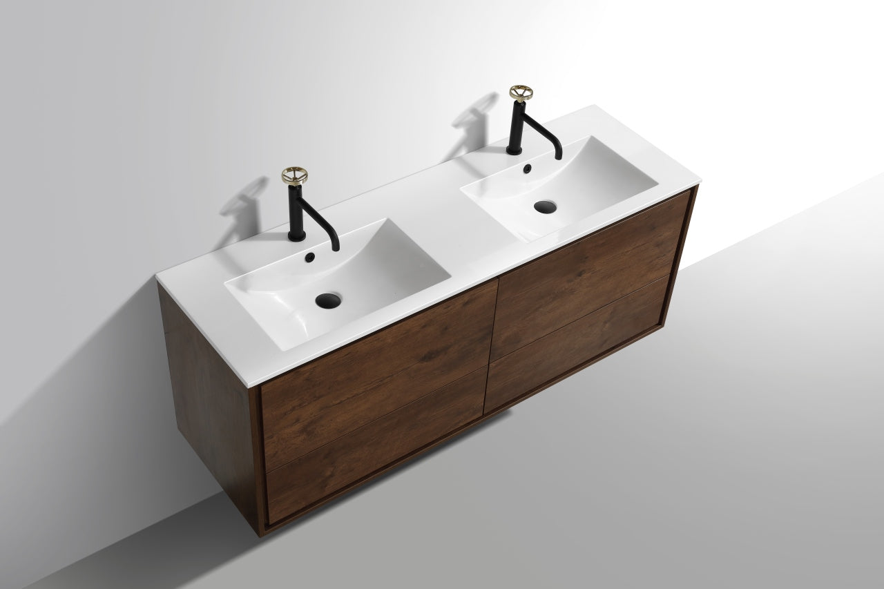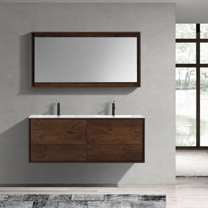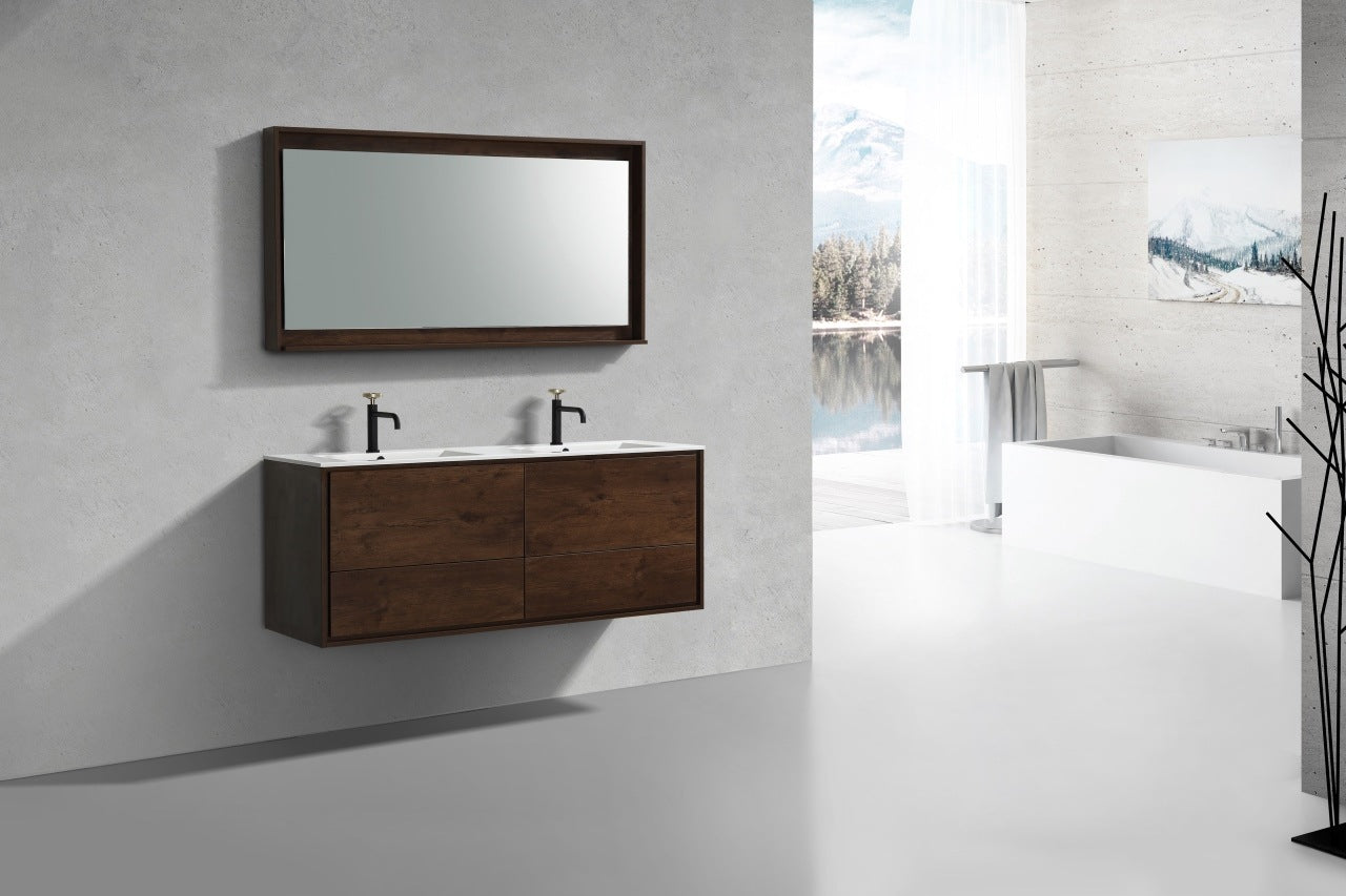 Kube Bath De Lusso 60″ Double Sink Rose Wood Wall Mount Modern Bathroom Vanity