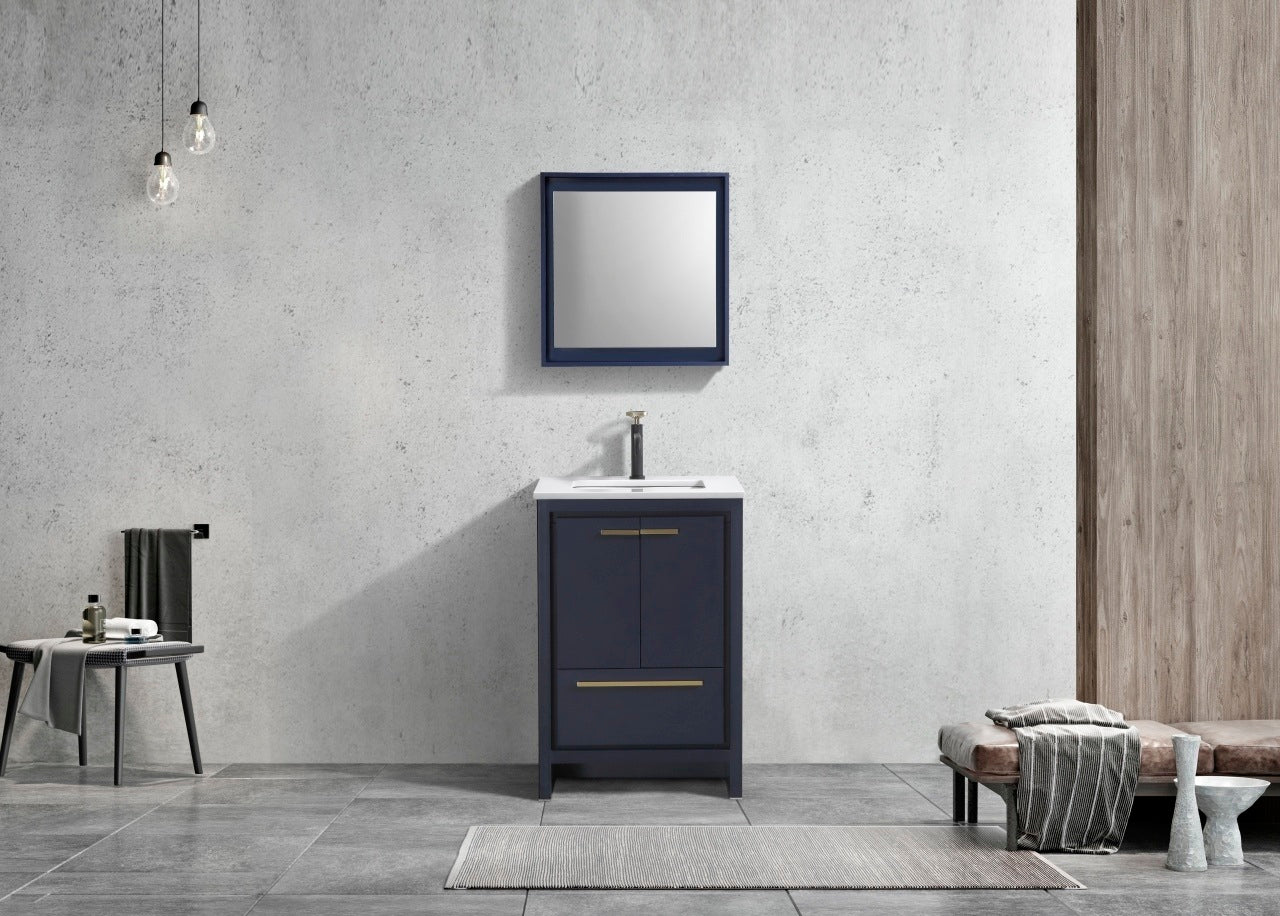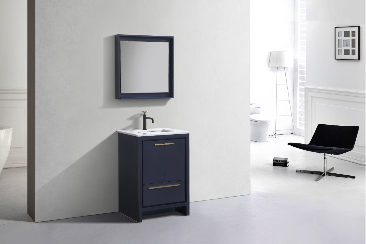 Kube Bath Dolce 24″ Blue Modern Bathroom Vanity With 2 Door and 1 Drawer and White Quartz Countertop