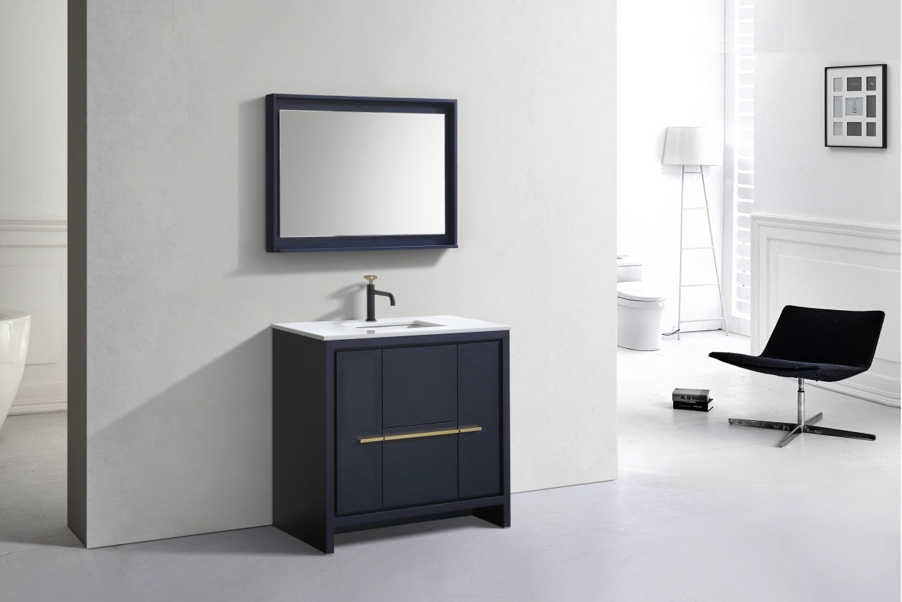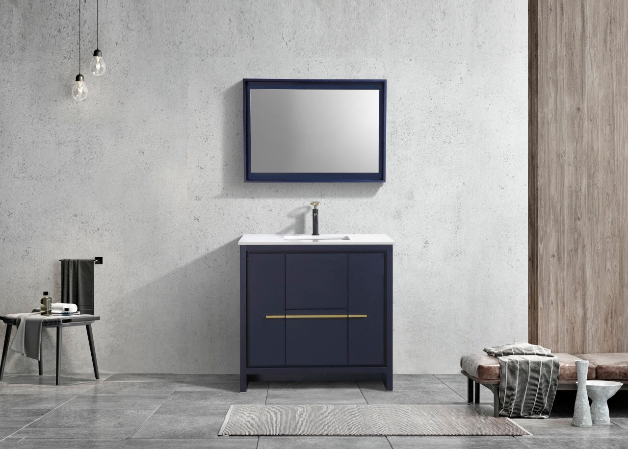 Kube Bath Dolce 36″ Blue Modern Bathroom Vanity With 2 Door and 2 Drawers and Quartz Countertop