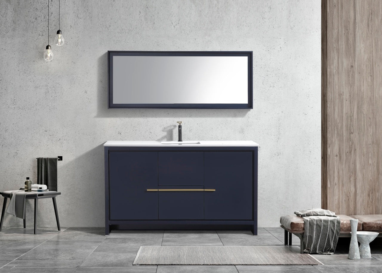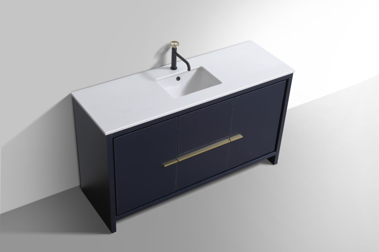 Kube Bath Dolce 60″ Blue Modern Single Sink Bathroom Vanity With 2 Doors and 2 Drawers White Quartz Countertop