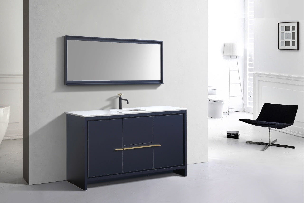 Kube Bath Dolce 60″ Blue Modern Single Sink Bathroom Vanity With 2 Doors and 2 Drawers White Quartz Countertop Kube Bath