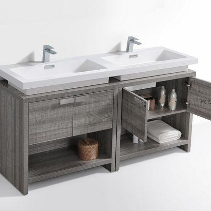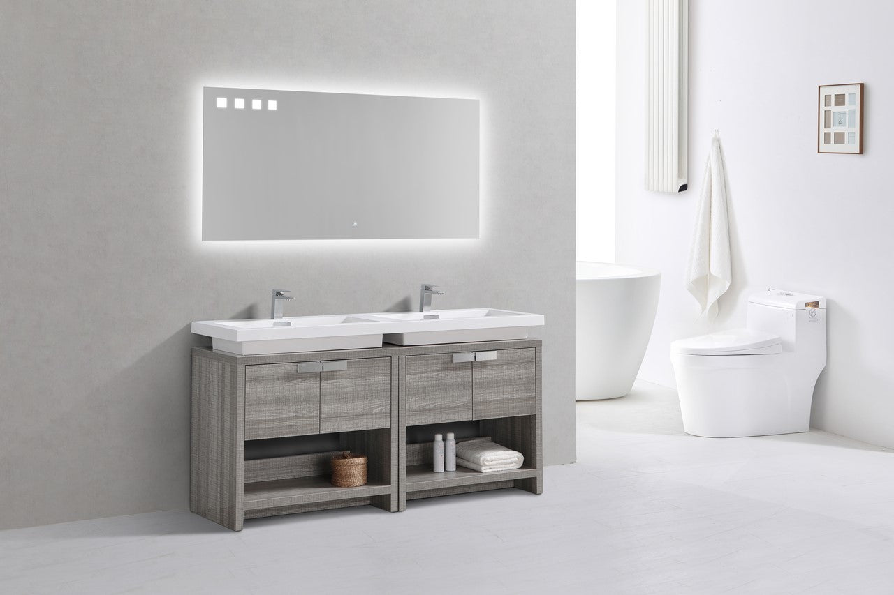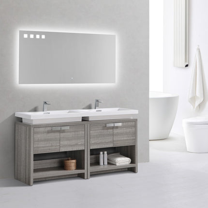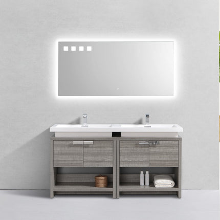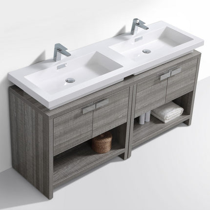 Kube Bath Levi 63″ Ash Gray Double Sink Modern Bathroom Vanity W/ Cubby Hole