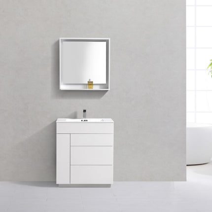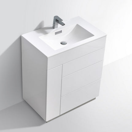 Kube Bath Milano 30″ Gloss White Floor Mount Modern Bathroom Vanity