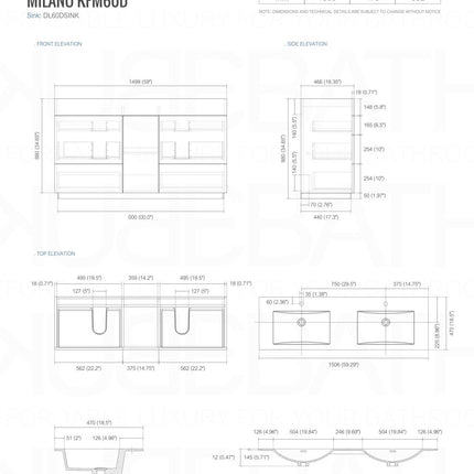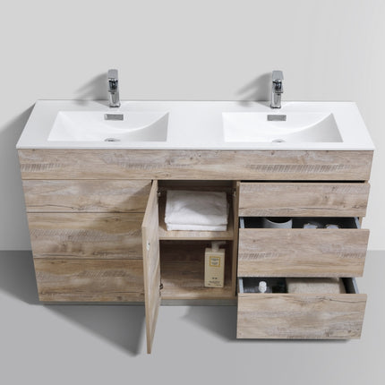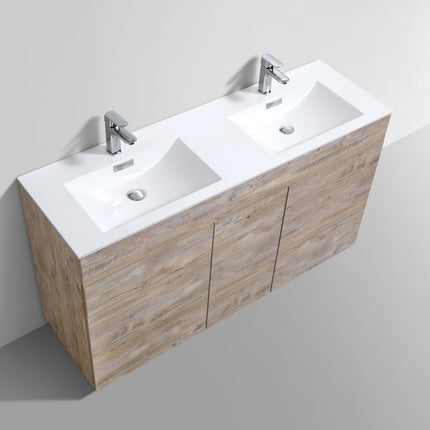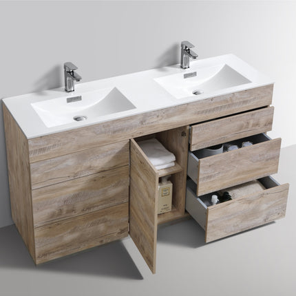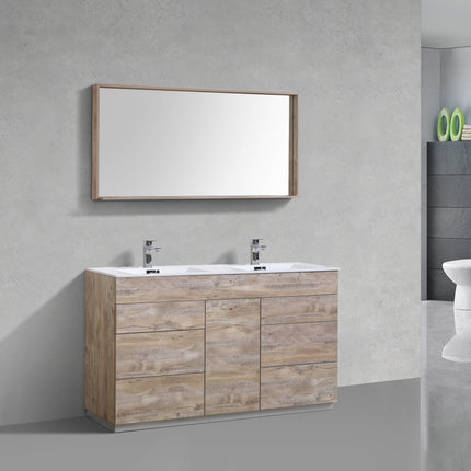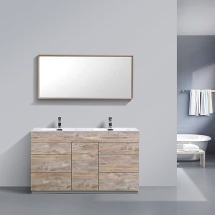 Kube Bath Milano 60″ Double Sink Nature Wood Floor Mount Modern Bathroom Vanity