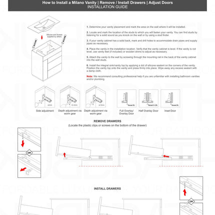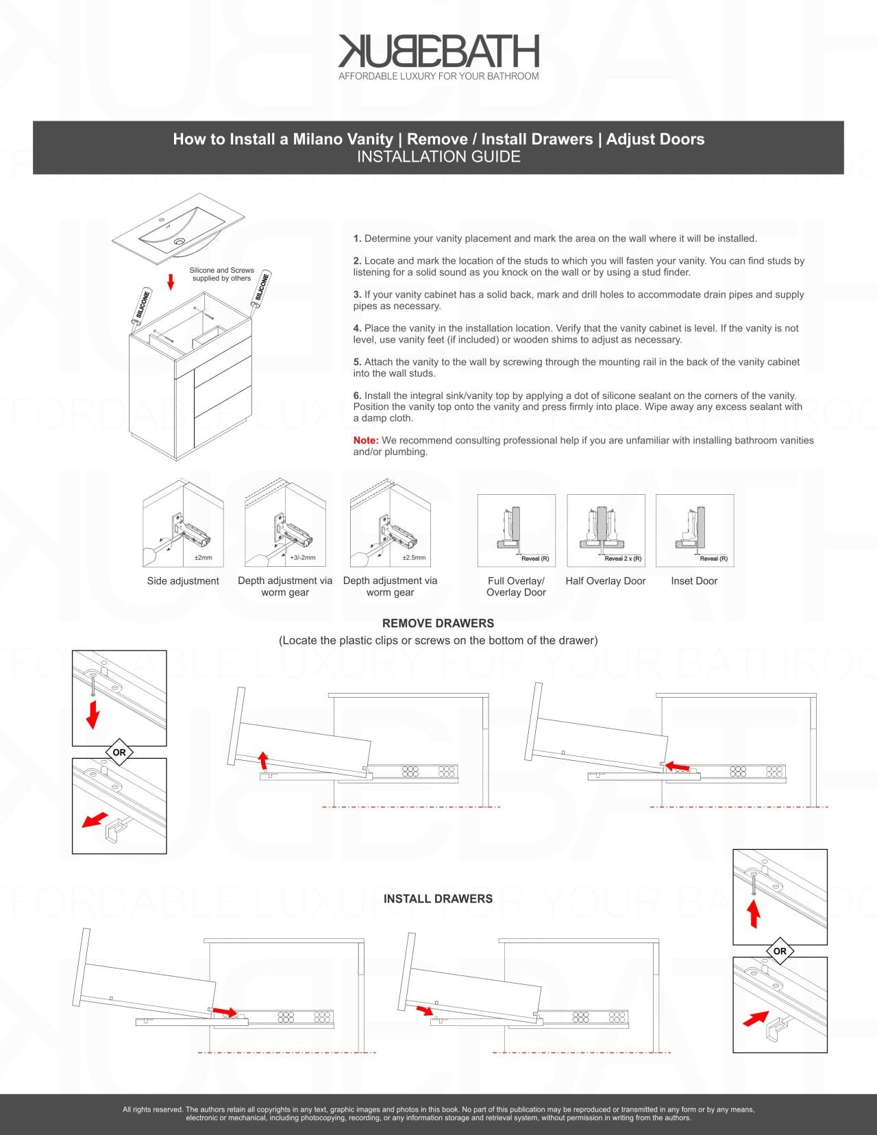 Minimalists are drawn to Milano, a no-fuss Vanity with a panache that goes beyond its simple presence. Though its silhouette is spare, the high-gloss finish and aluminum kickboard provide just enough wow factor. The integrated Push-Open sliders ensure all drawers and door glide open and shut with little effort every time. The Milano Vanity features one door and six fully functional drawers and a crisp white acrylic composite countertop with an integrated sink.
