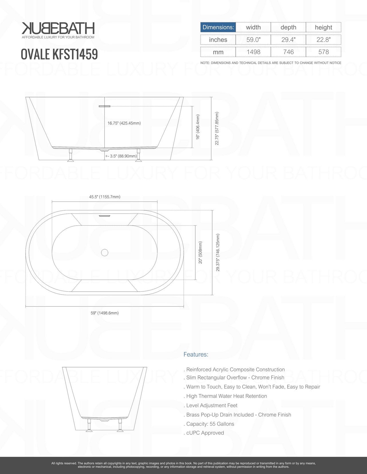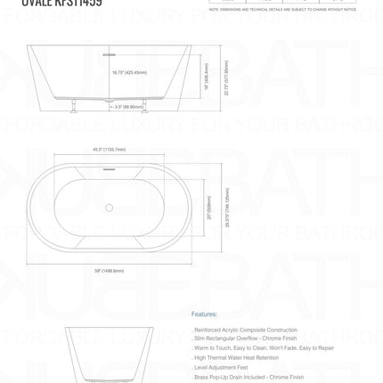 Kube Bath Ovale 59 Inch White Free Standing Bathtub