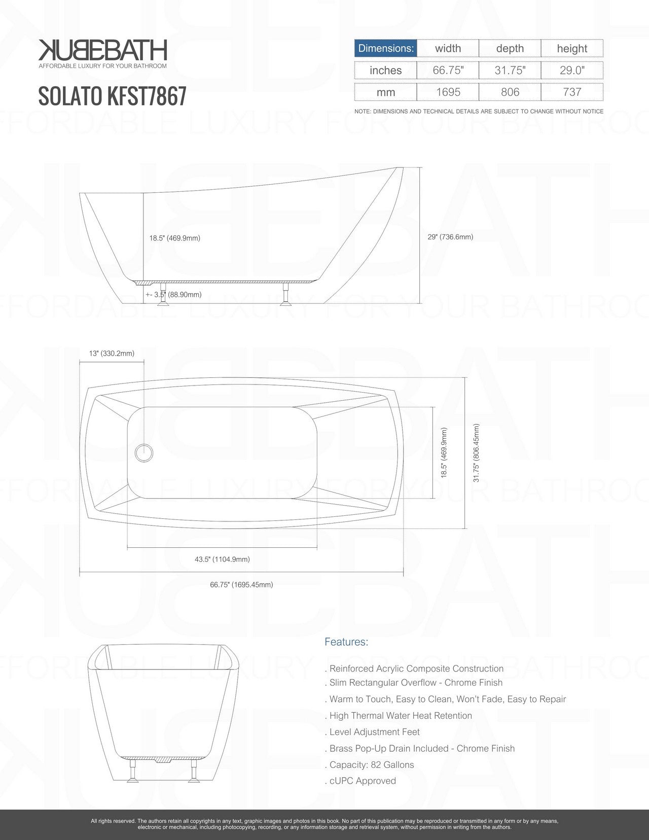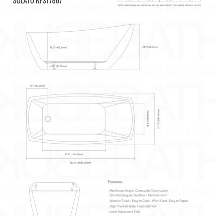 Kube Bath Solato 67 Inch Free Standing Bathtub