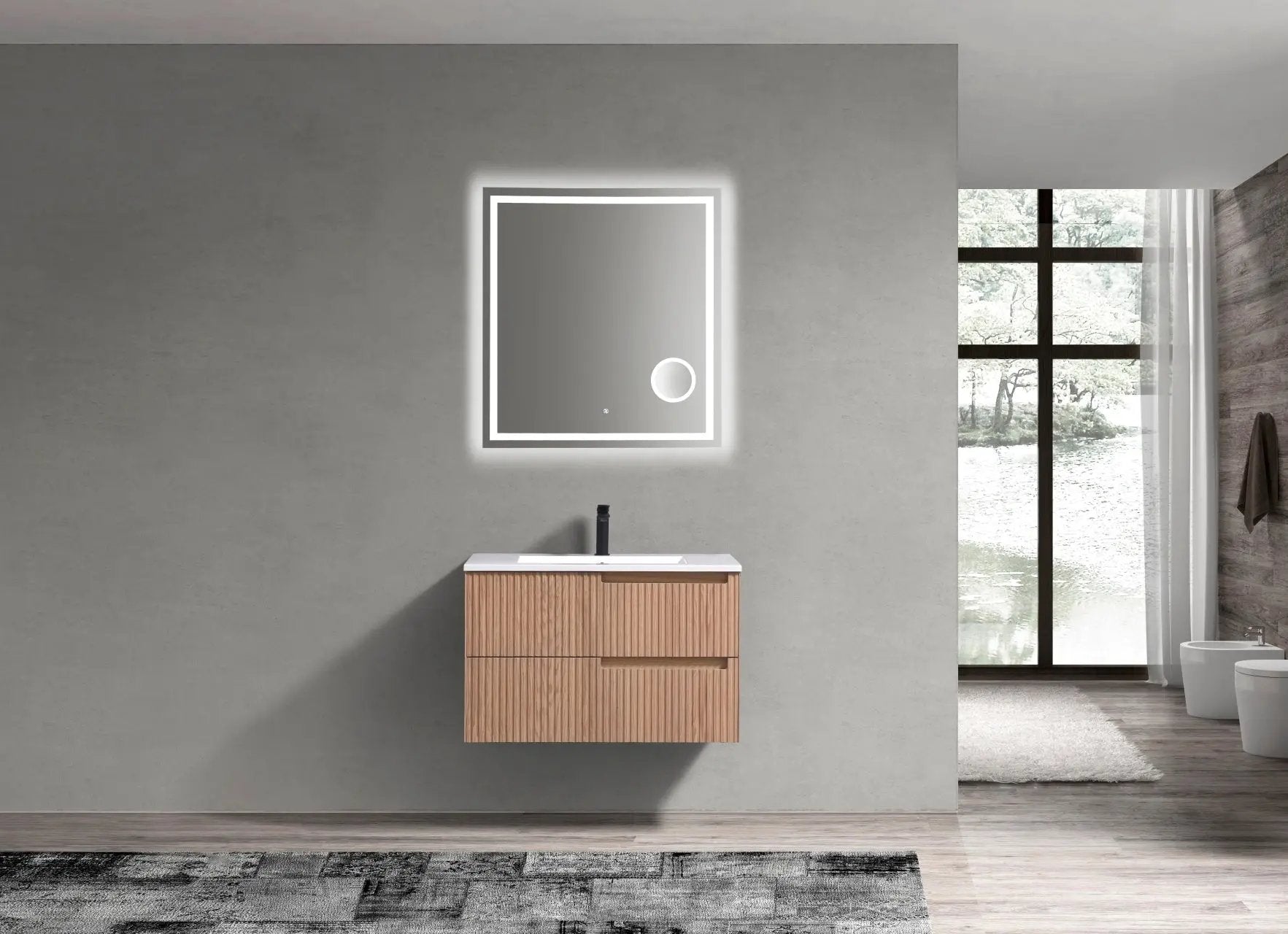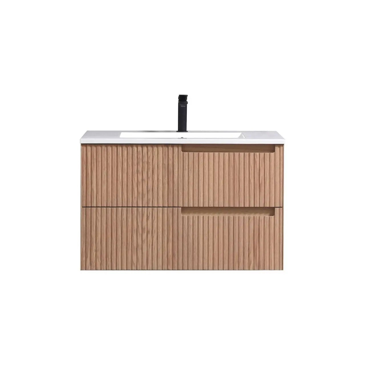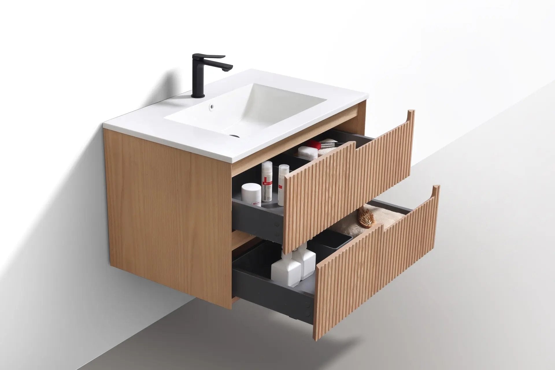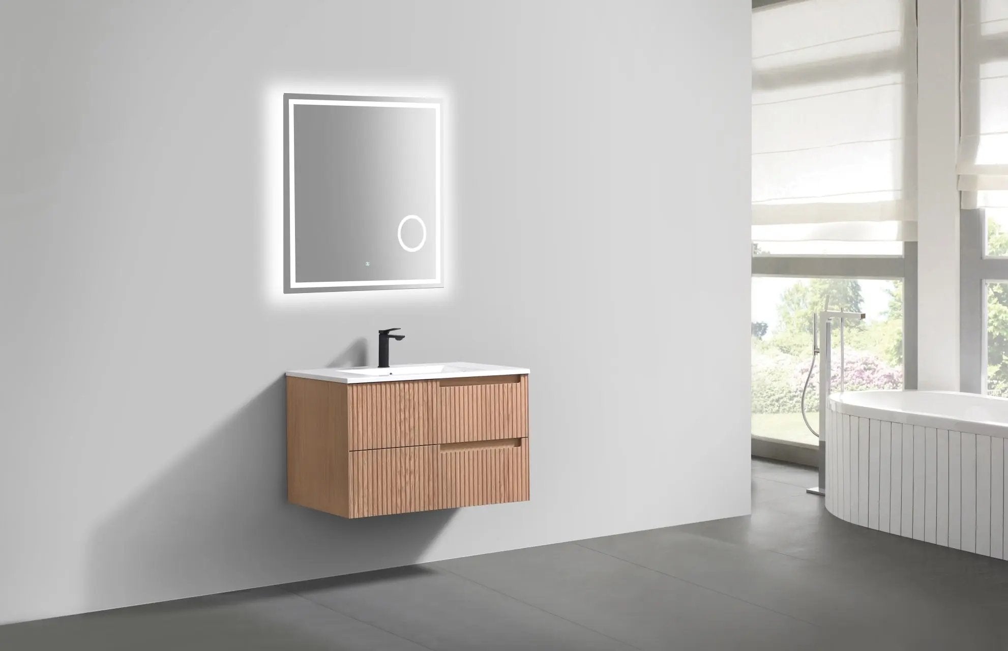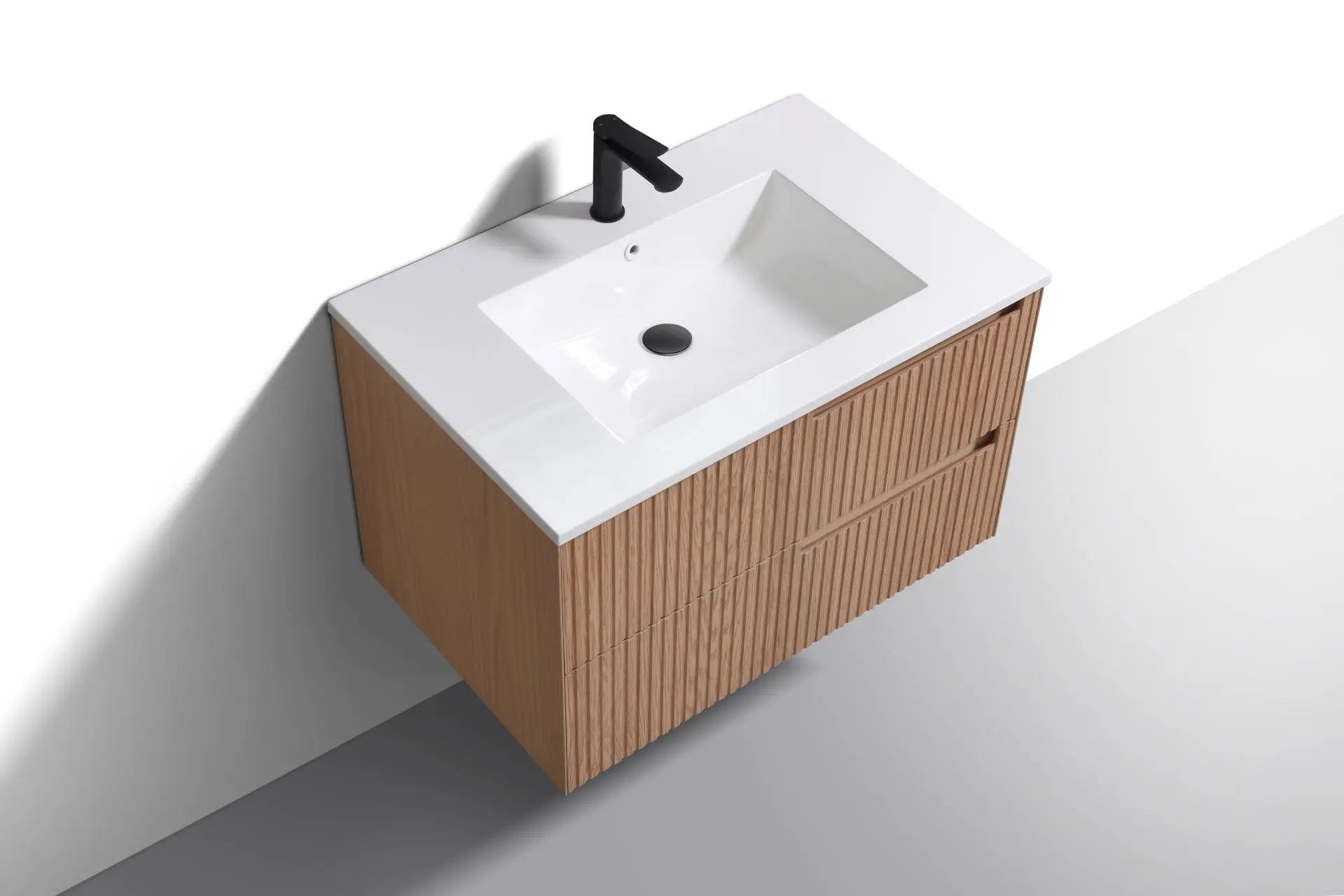 KubeBath 32” Fiore Modern Wall Mount Bathroom Vanity – Oakwood