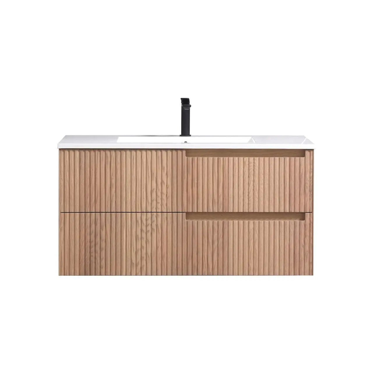 KubeBath 40” Fiore Modern Wall Mount Bathroom Vanity – Oakwood