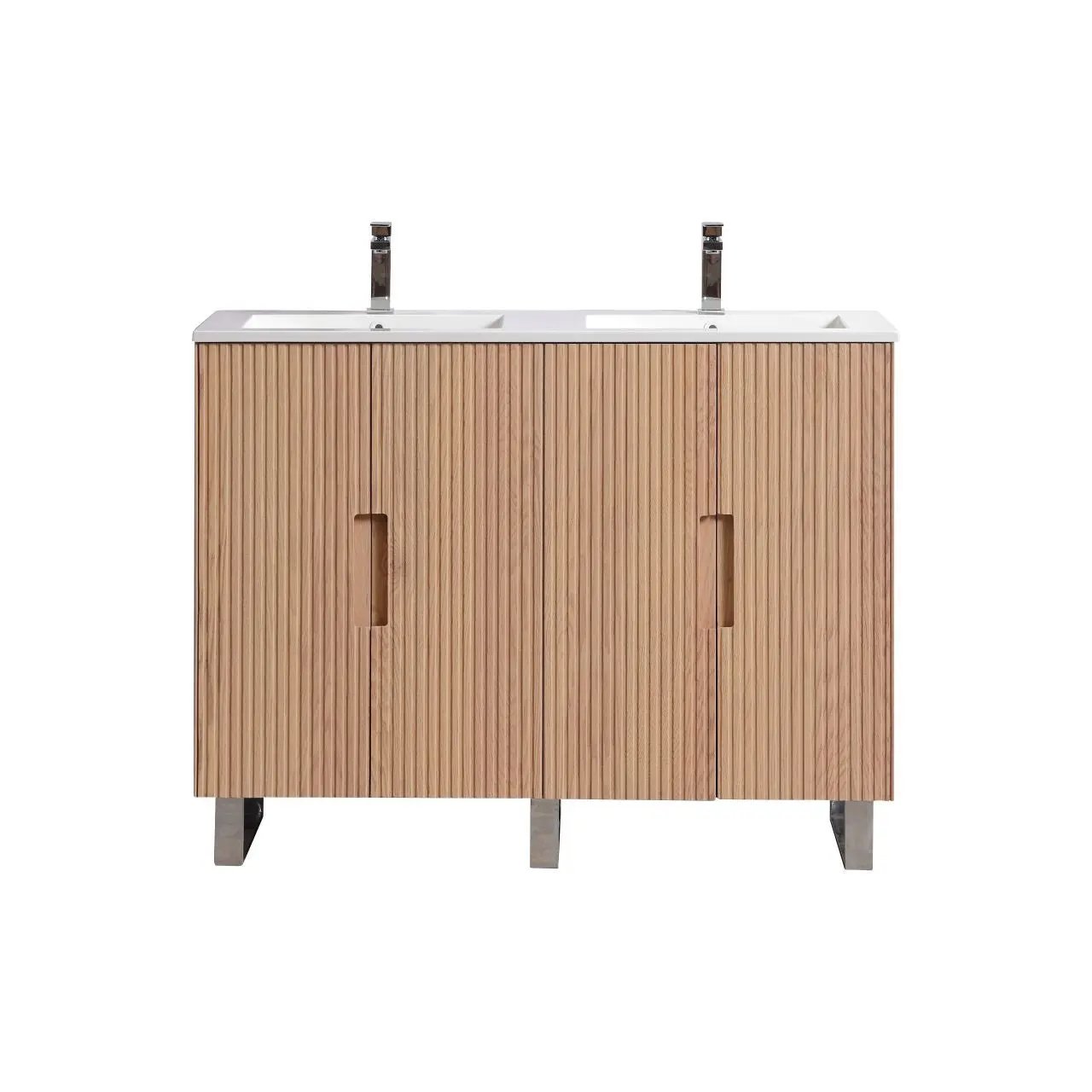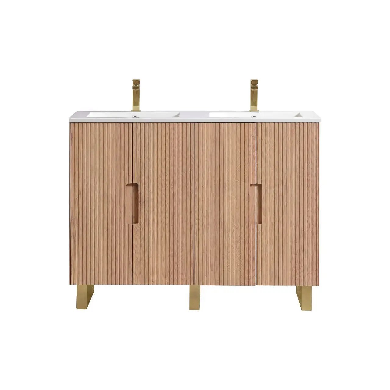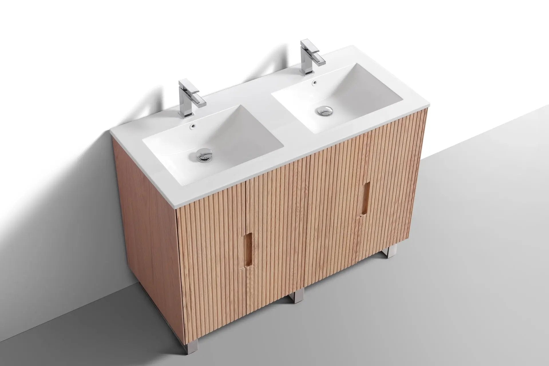 KubeBath 48” Fiore Double Sink Free Standing Bathroom Vanity Oakwood FSKSW48D