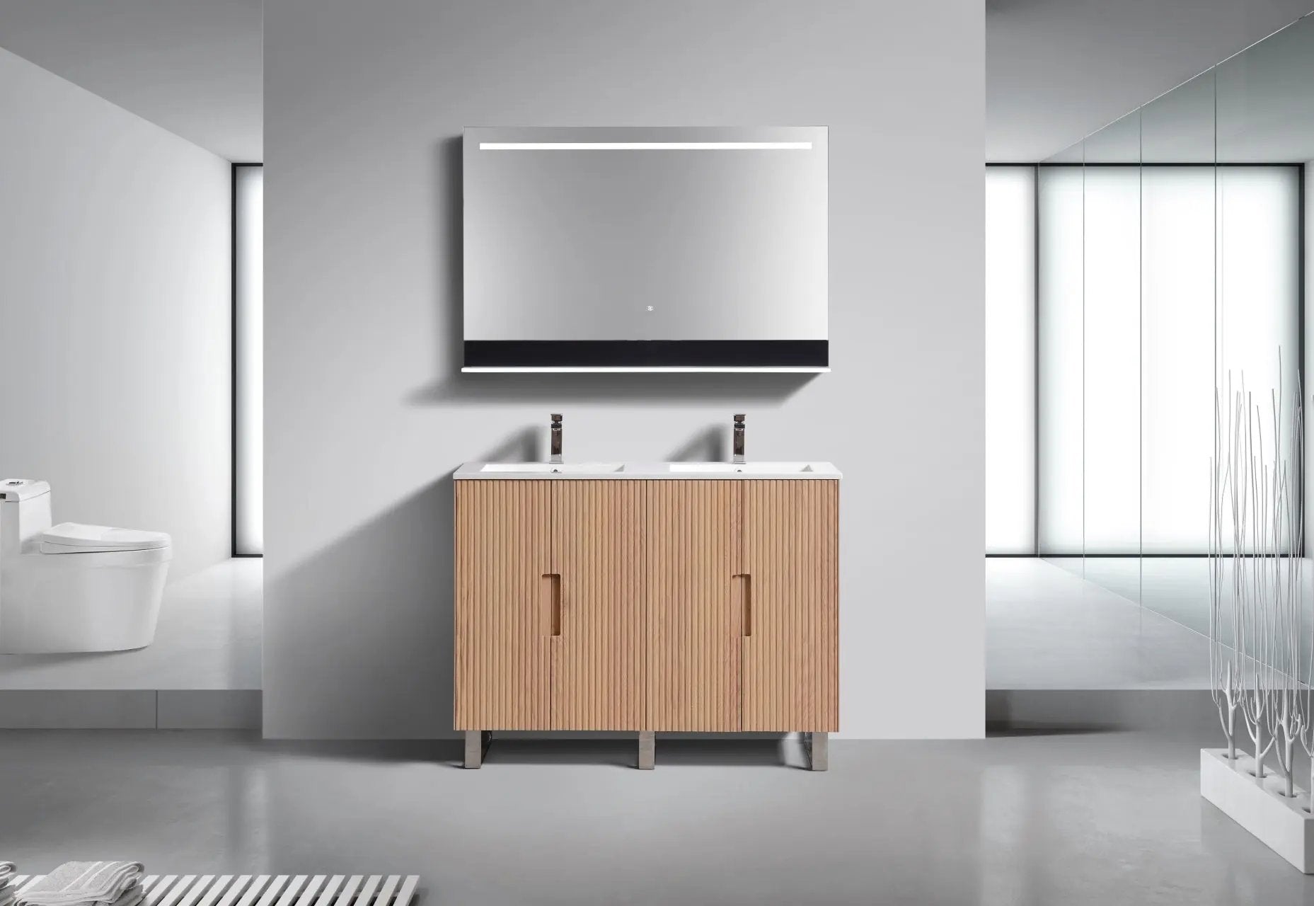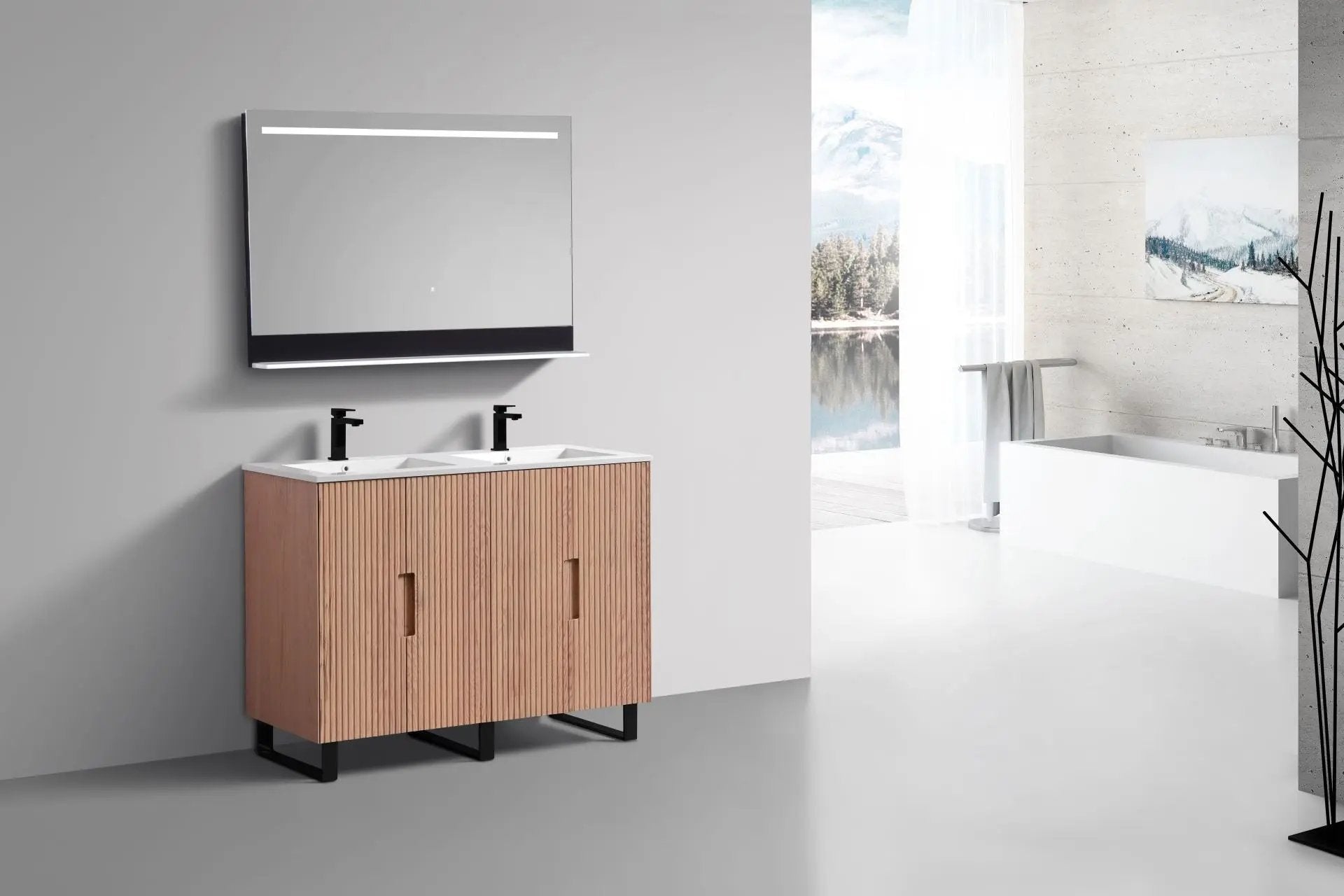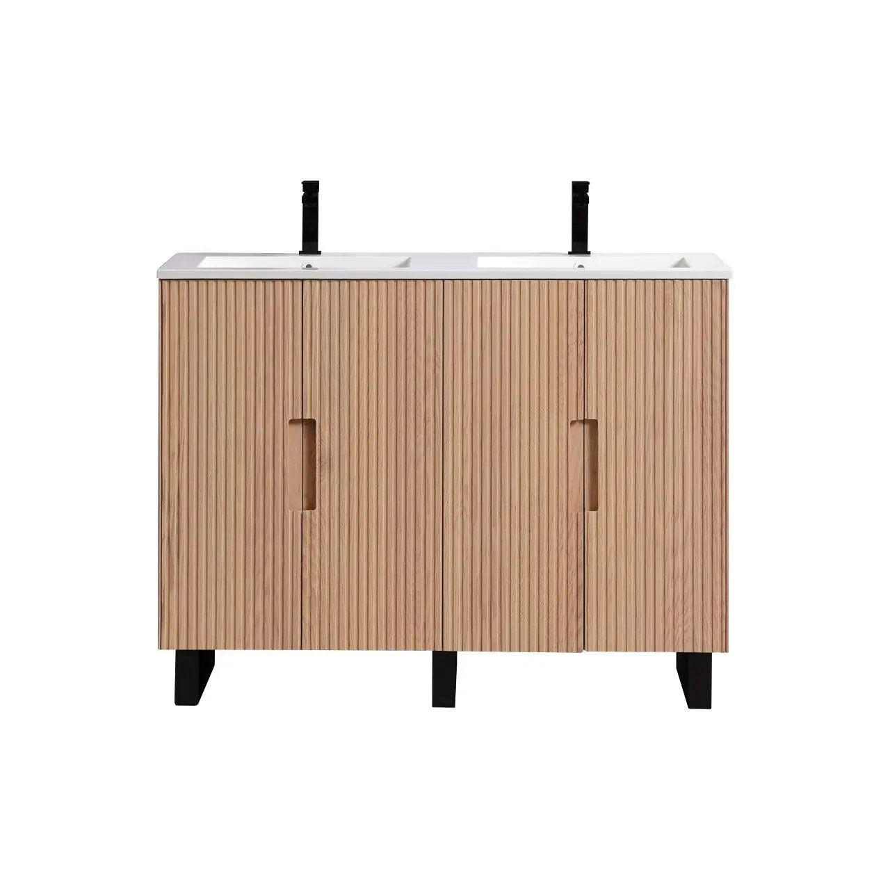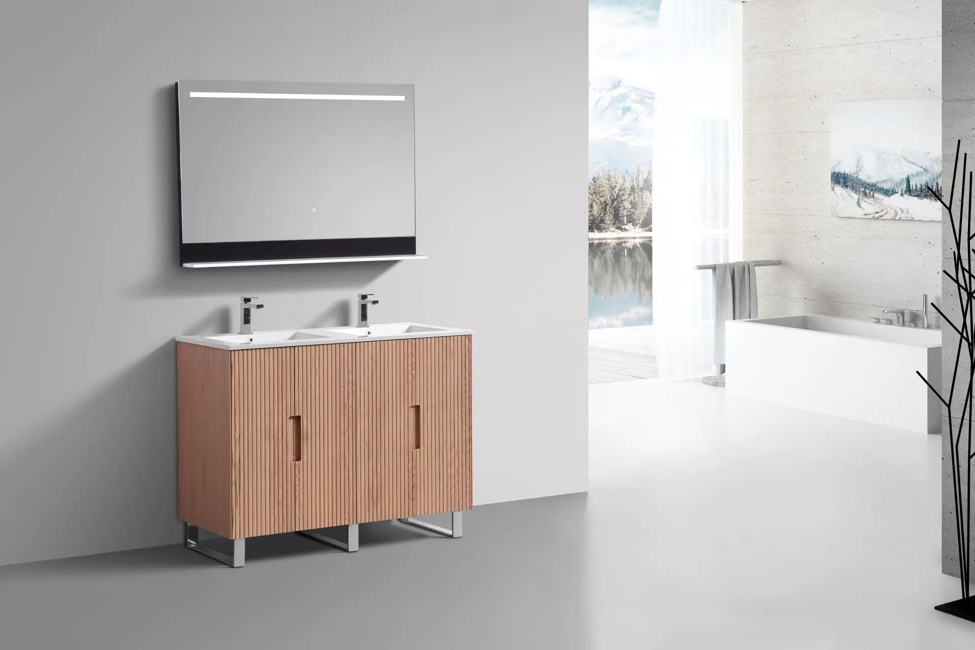 KubeBath 48” Fiore Double Sink Free Standing Bathroom Vanity Oakwood FSKSW48D