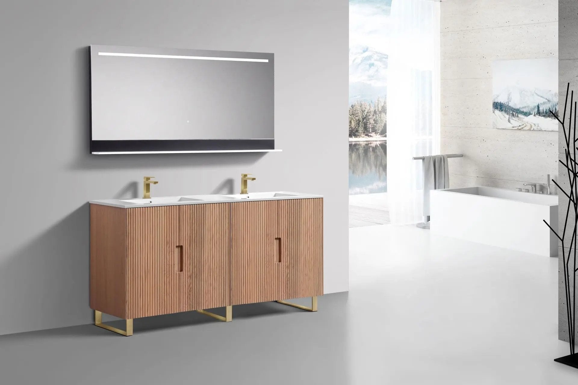 KubeBath 71.2” Fiore Double Sink Free Standing Bathroom Vanity Oakwood