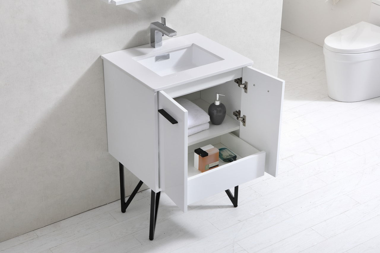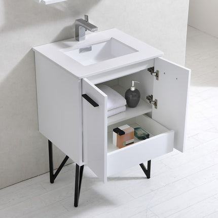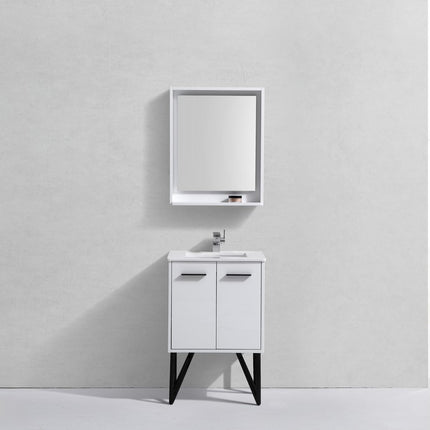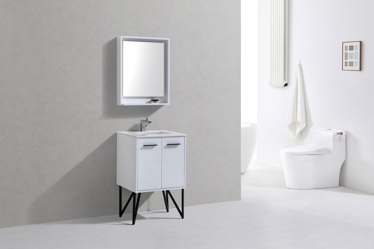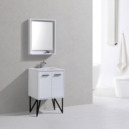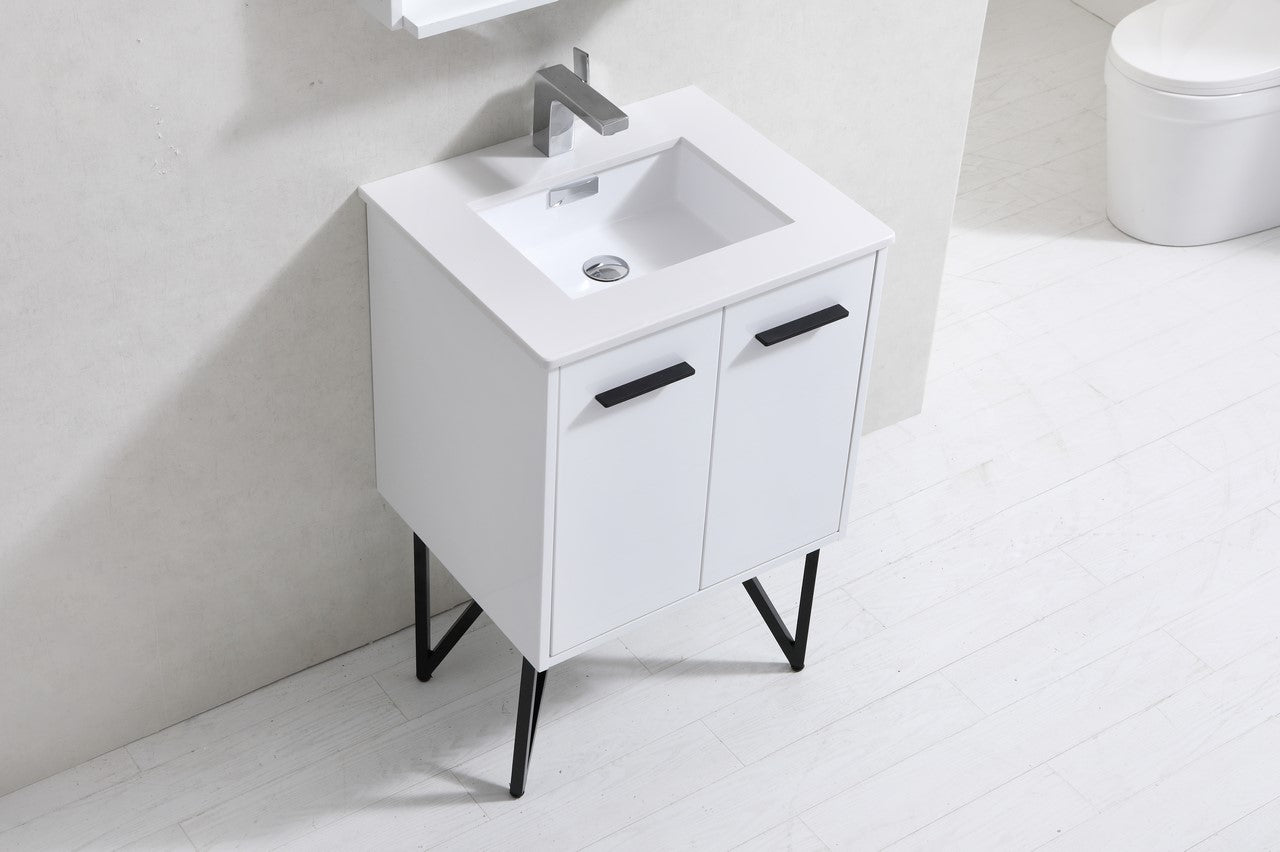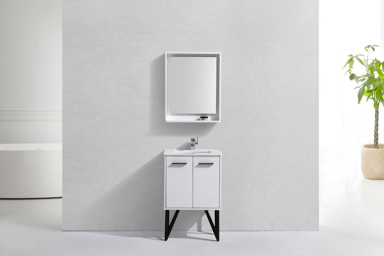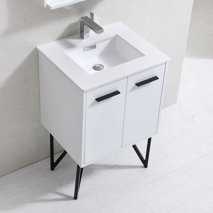KubeBath Bosco 24″ High Gloss White Modern Bathroom Vanity W/ White Countertop