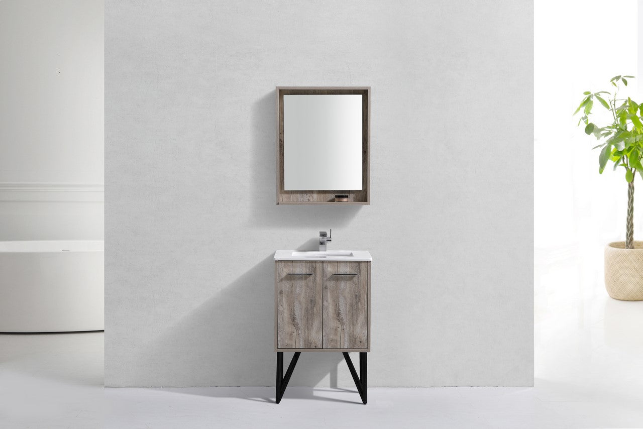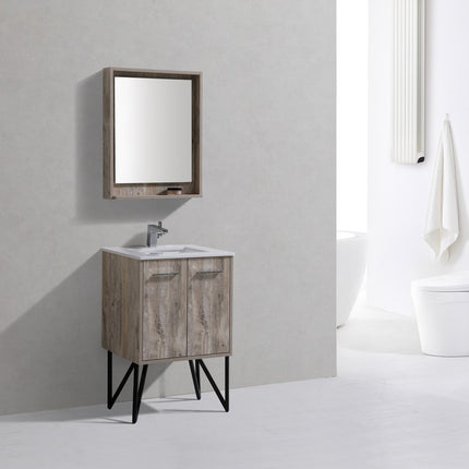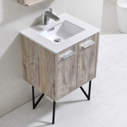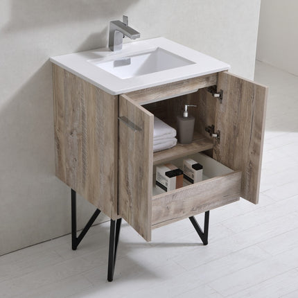 KubeBath Bosco 24″ Nature Wood Modern Bathroom Vanity W/ White Countertop