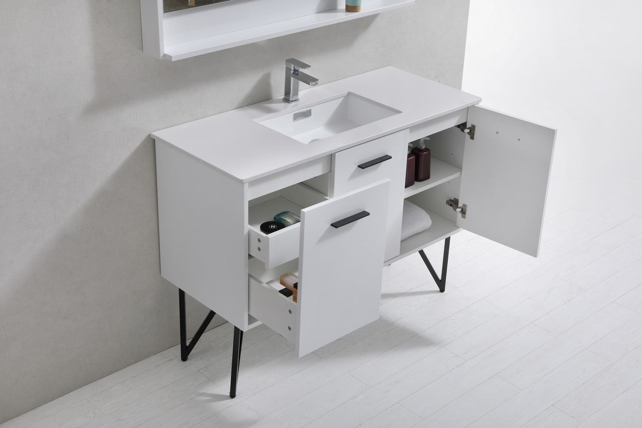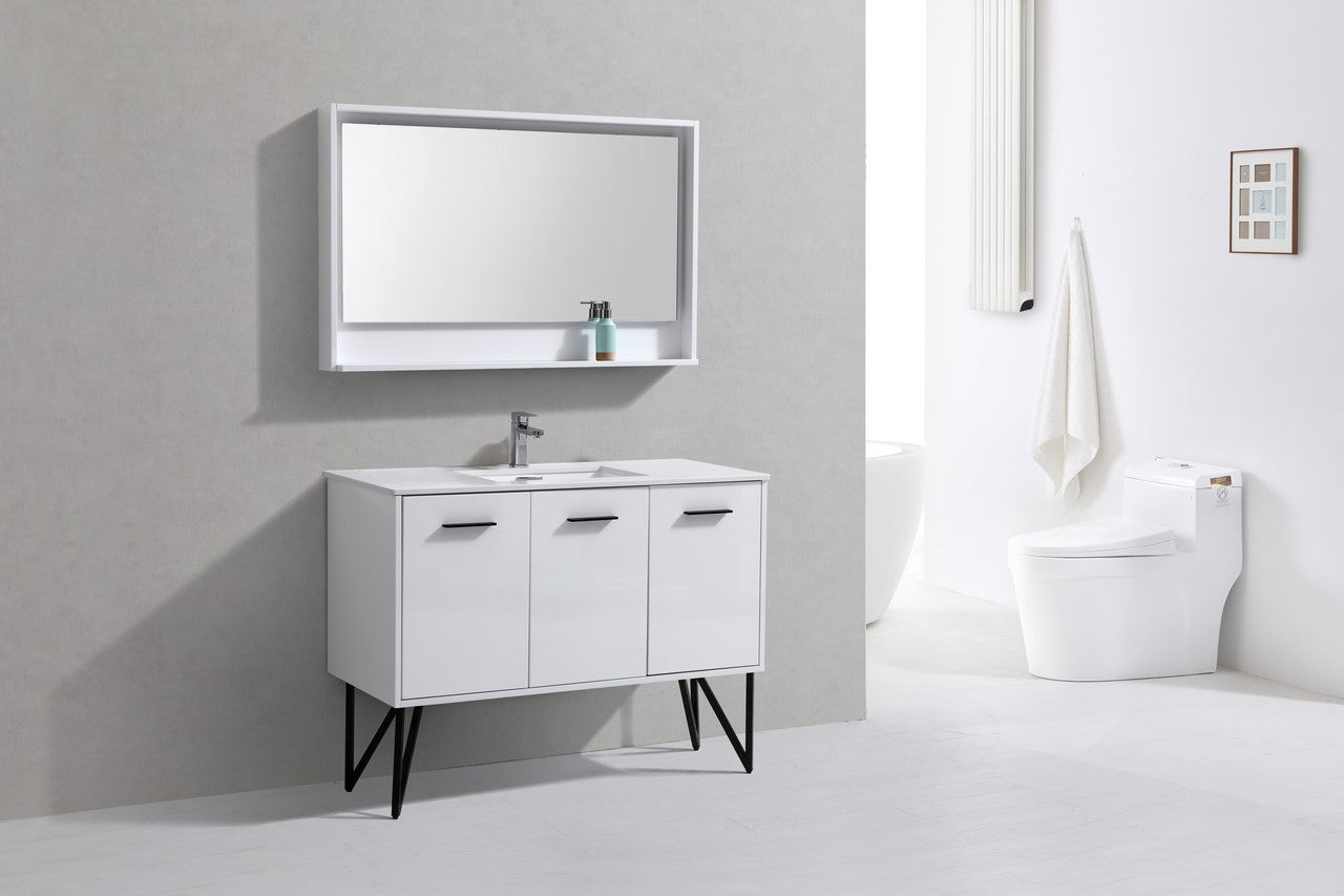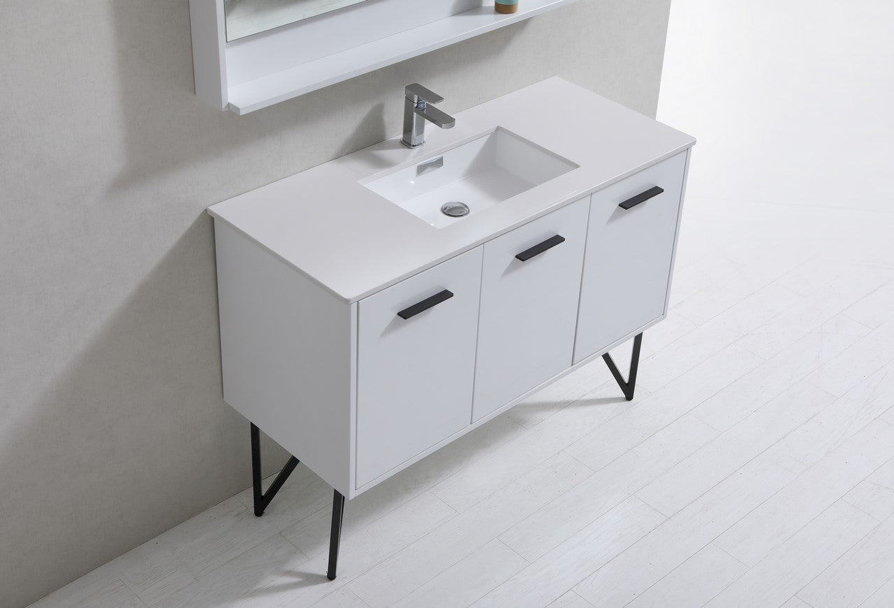 KubeBath Bosco 48″ High Gloss White Modern Bathroom Vanity W/ White Countertop