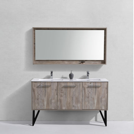 KubeBath Bosco 60″ Nature Wood Modern Bathroom Vanity W/ White Countertop