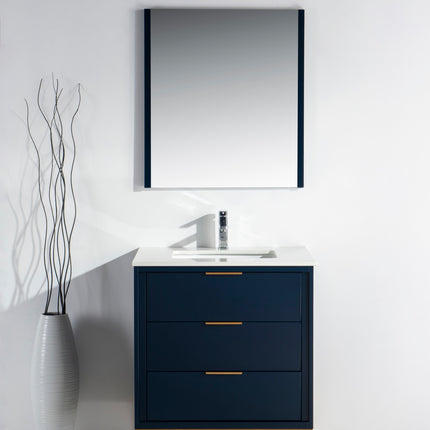 KubeBath Divani 30″ Gloss Blue Single Sink Vanity W/ Quartz Counter Top