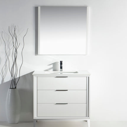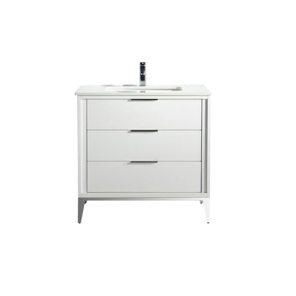 KubeBath Divani 36″ Gloss White Single Sink Vanity W/ Quartz Counter Top