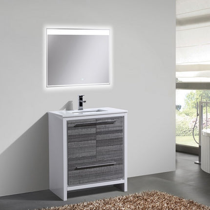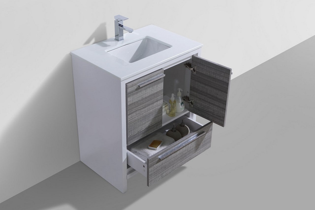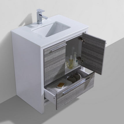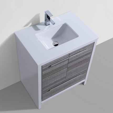 KubeBath Dolce 30″ Ash Gray Modern Bathroom Vanity With Quartz Countertop