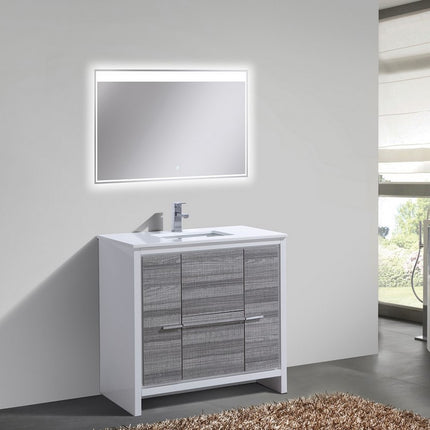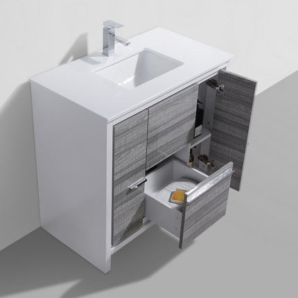 KubeBath Dolce 36″ Ash Gray Modern Bathroom Vanity With Quartz Countertop