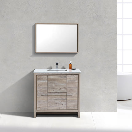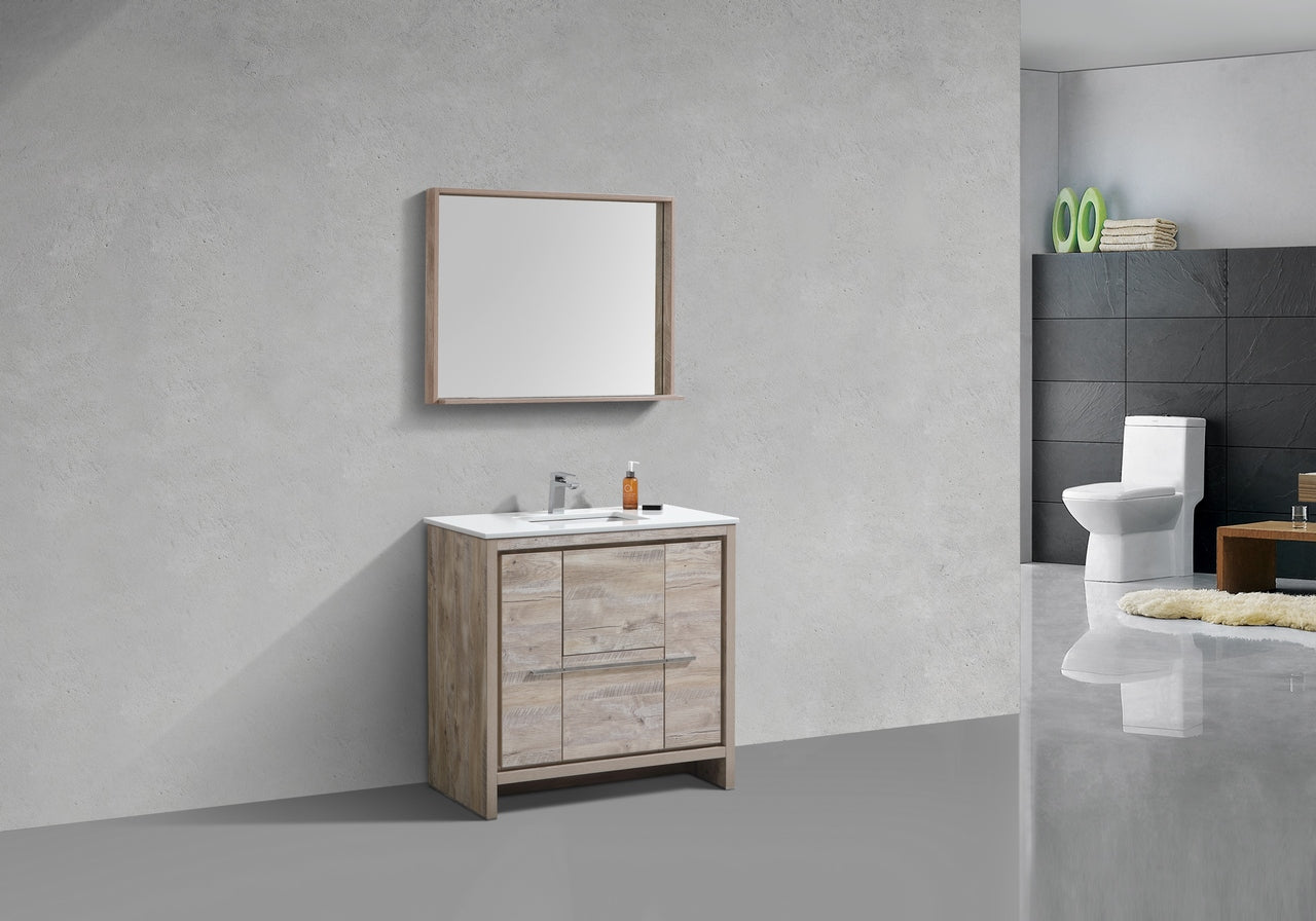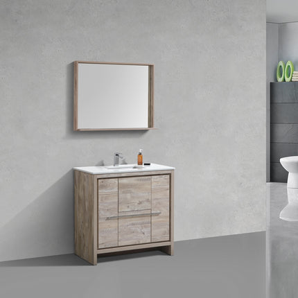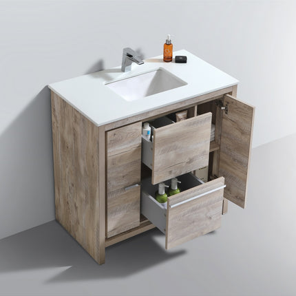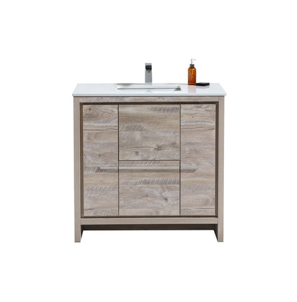 KubeBath Dolce 36″ Nature Wood Modern Bathroom Vanity With Quartz Countertop