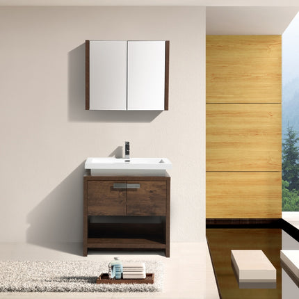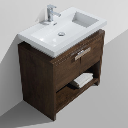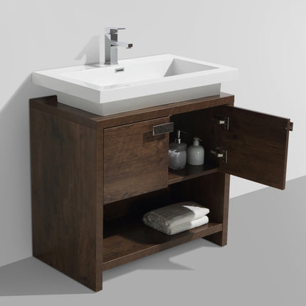 KubeBath Levi 32″ Rose Wood Modern Bathroom Vanity W/ Cubby Hole