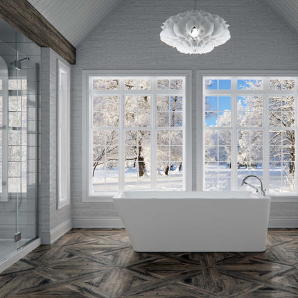 Introducing Lauzanne's modern rectangle freestanding soaking or air tubs, offering versatility with the option for deck mount faucets. These tubs feature a sleek rectangular design with subtle curves, end drain, and a wide rim, ideal for accommodating deck-placed tub fillers. Perfectly tailored for smaller bathrooms, they come in lengths of 60" and 66" with a narrow width of 30". With an above-floor rough-in design, these tubs boast a larger space underneath, simplifying installation, particularly for remodeling projects and slab installations. Complete with a modern slotted overflow and toe-tap feature, Lauzanne tubs combine functionality and style for an exceptional bathing experience.