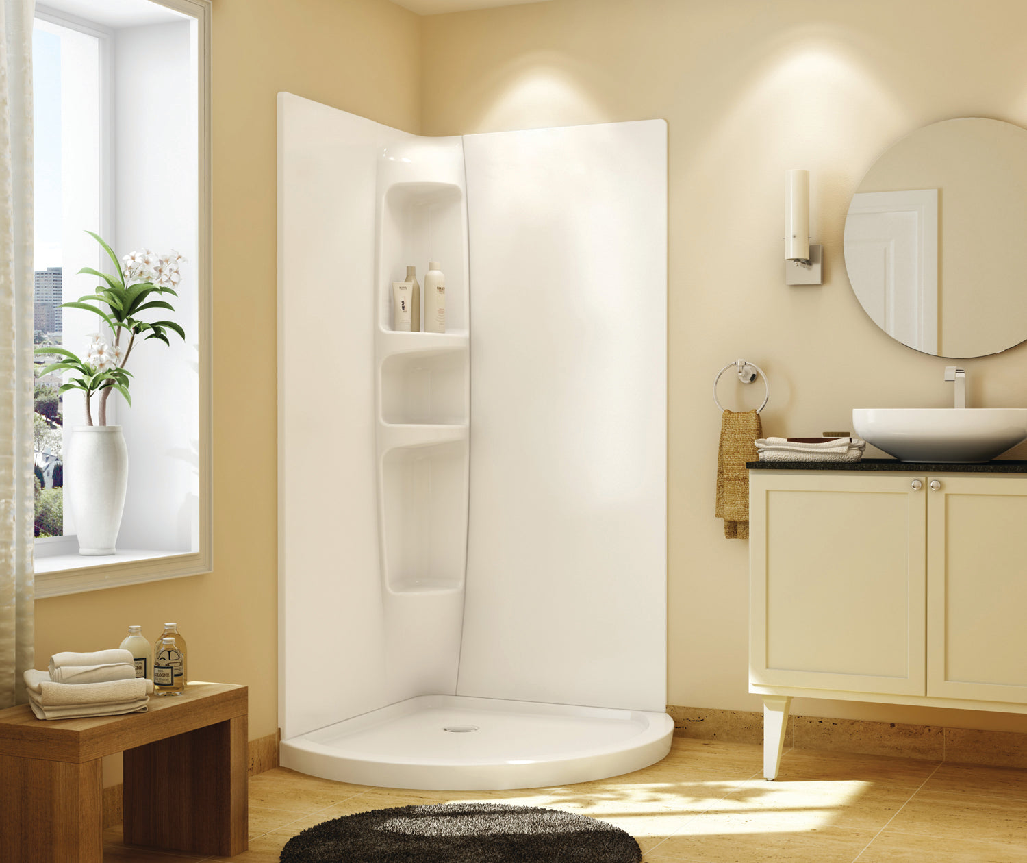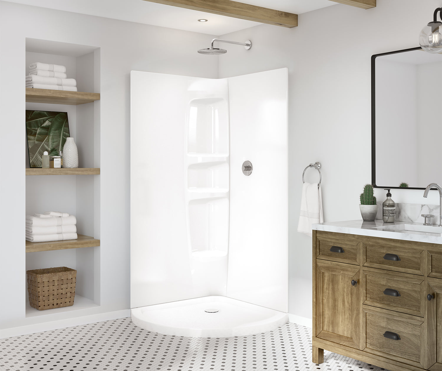 Maax 36 x 36 in. Acrylic Direct-to-Stud Two-Piece Corner Shower Wall Kit in White 105753-000-001-000