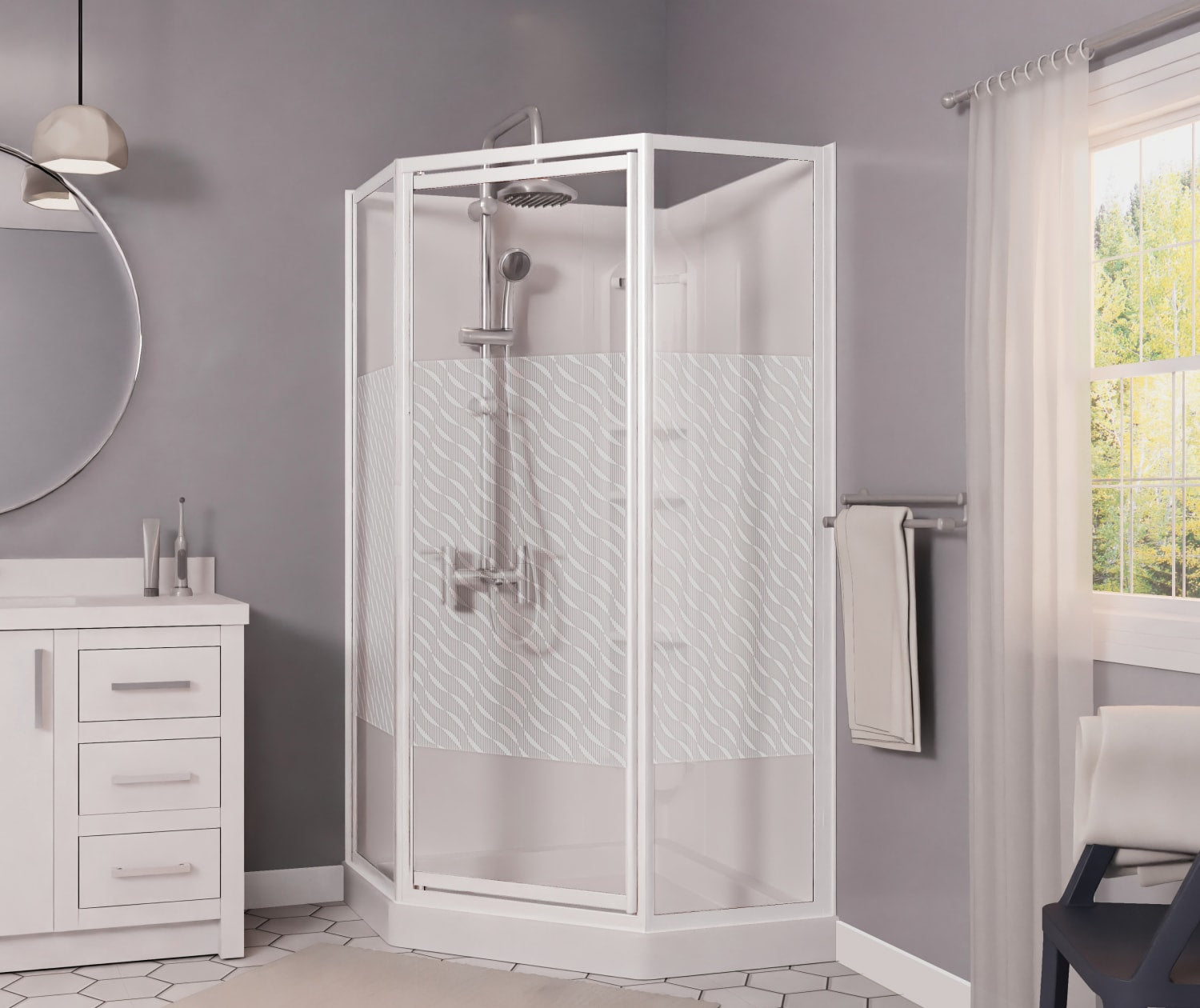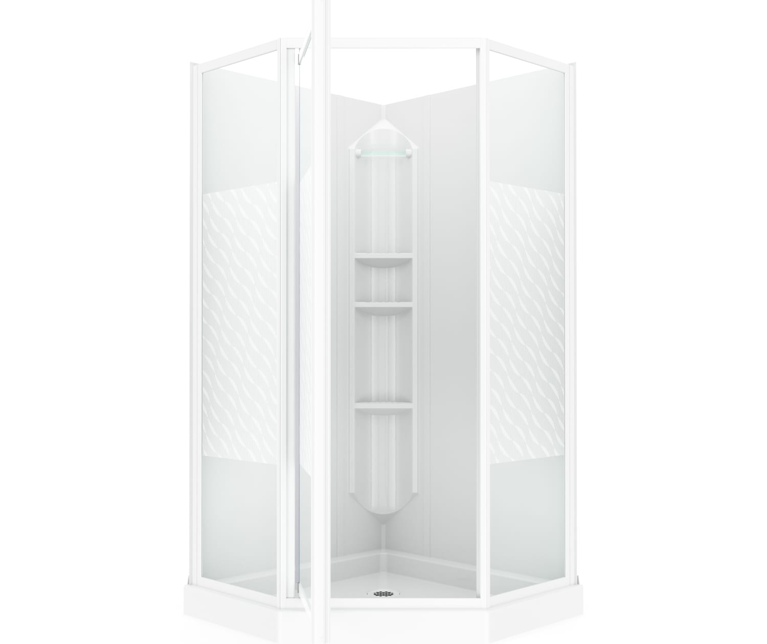 Maax 38 Himalaya 38 x 38 Polystyrene Center Drain Shower Kit in White with Design 47 glass in White 101694-000-129-106