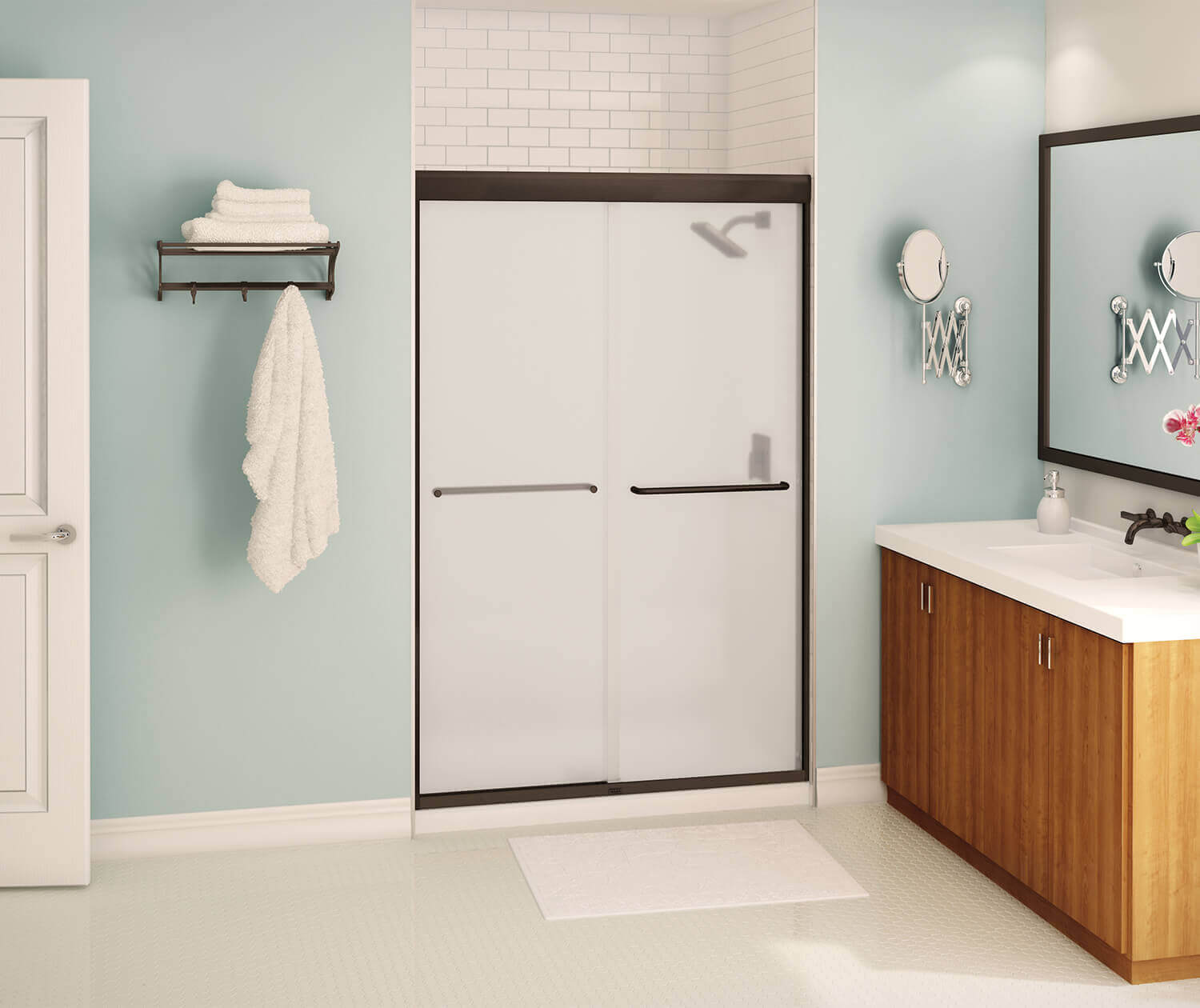 Aura 43-47 x 71 in. 6 mm Bypass Shower Door for Alcove Installation with Frosted glass in Dark Bronze
