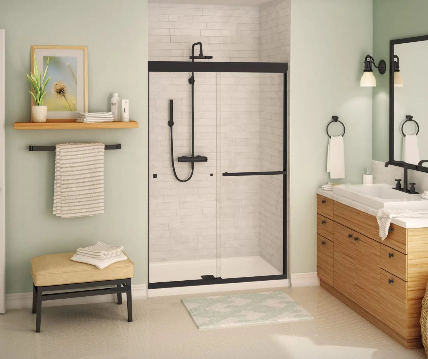 Aura 43-47 x 71 in. 8 mm Bypass Shower Door for Alcove Installation with Clear glass in Matte Black