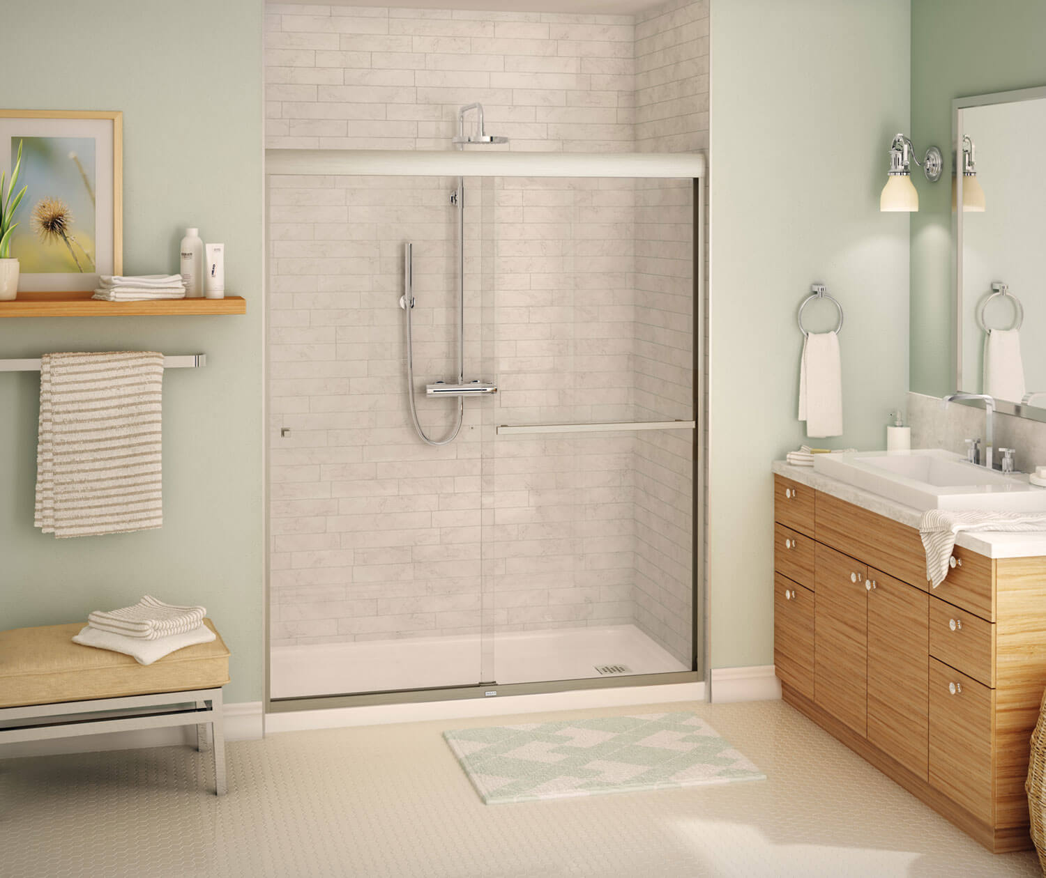 Aura SC 55-59 in. x 71 in. 8 mm Bypass Shower Door for Alcove Installation with Clear glass in Brushed Nickel