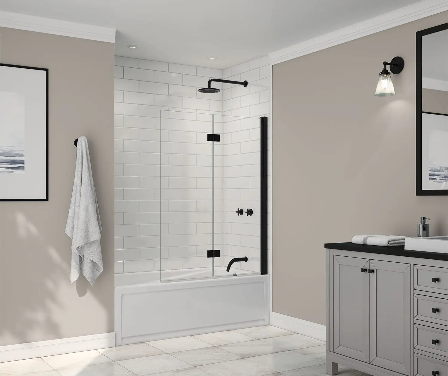Maax Axial Access 42 x 56 in. 6 mm Pivot Tub Screen for Alcove Installation with Clear glass in Matte Black 138600-900-340-000
