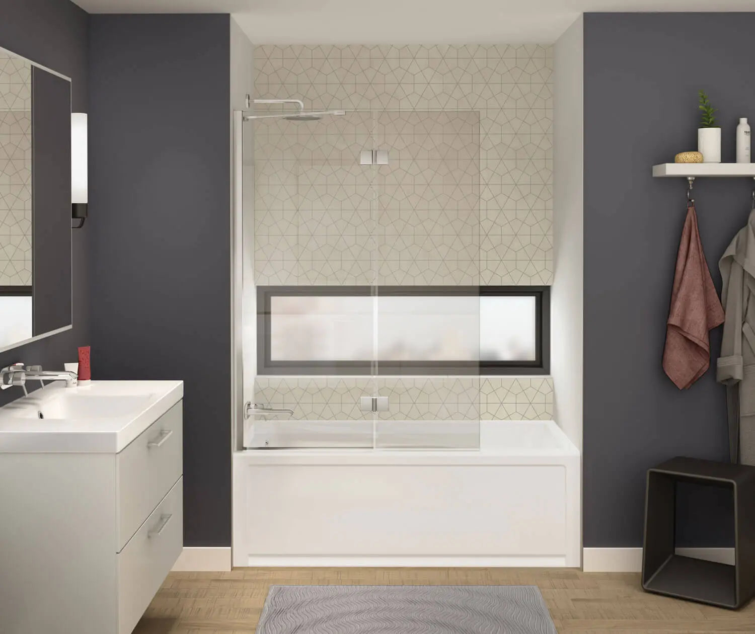 Axial Duo 42 x 58 in. 8 mm Pivot Tub Screen for Alcove Installation with Clear glass in Brushed Nickel