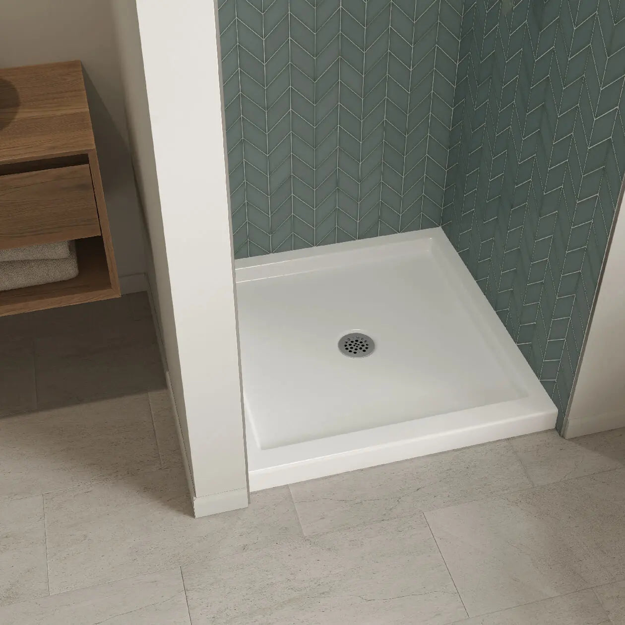 Maax B3Round 3636 Acrylic Alcove Shower Base in White with Center Drain 410000-501-001-000