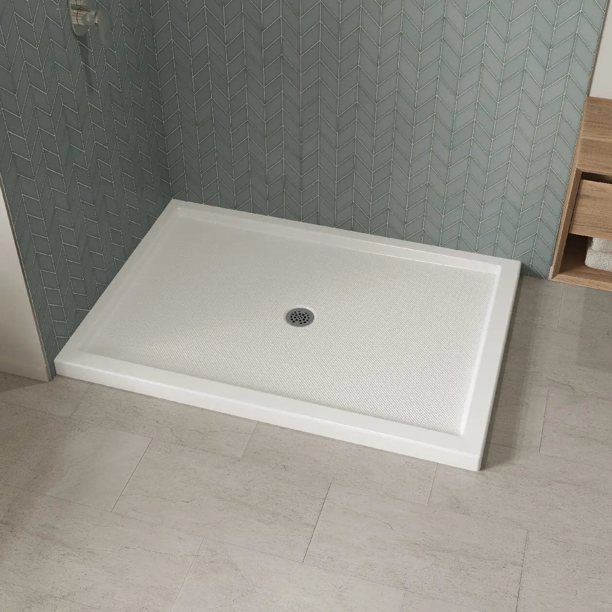 Maax B3Round 6042 Acrylic Corner Left Shower Base in White with Anti-slip Bottom with Center Drain 410036-542-001-000