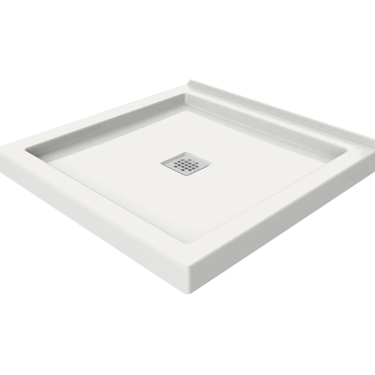 Maax B3Square 3636 Acrylic Wall Mounted Shower Base in White with Center Drain 420000-505-001-100