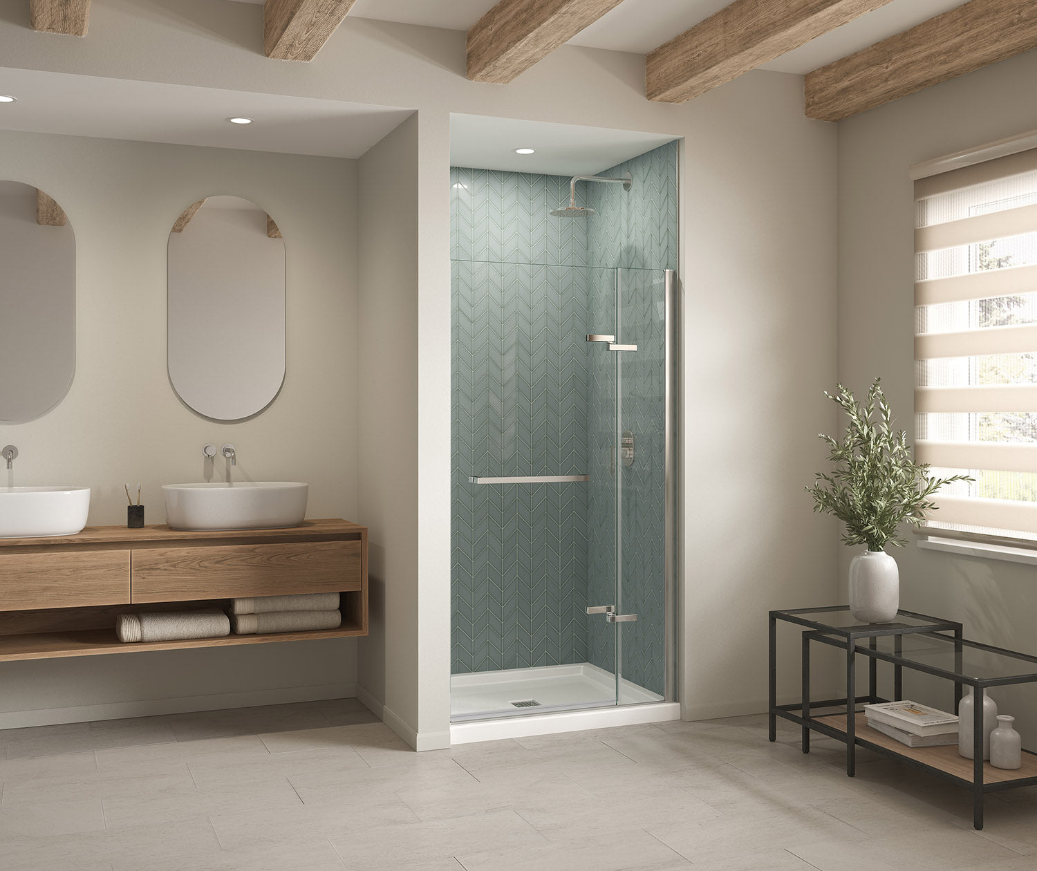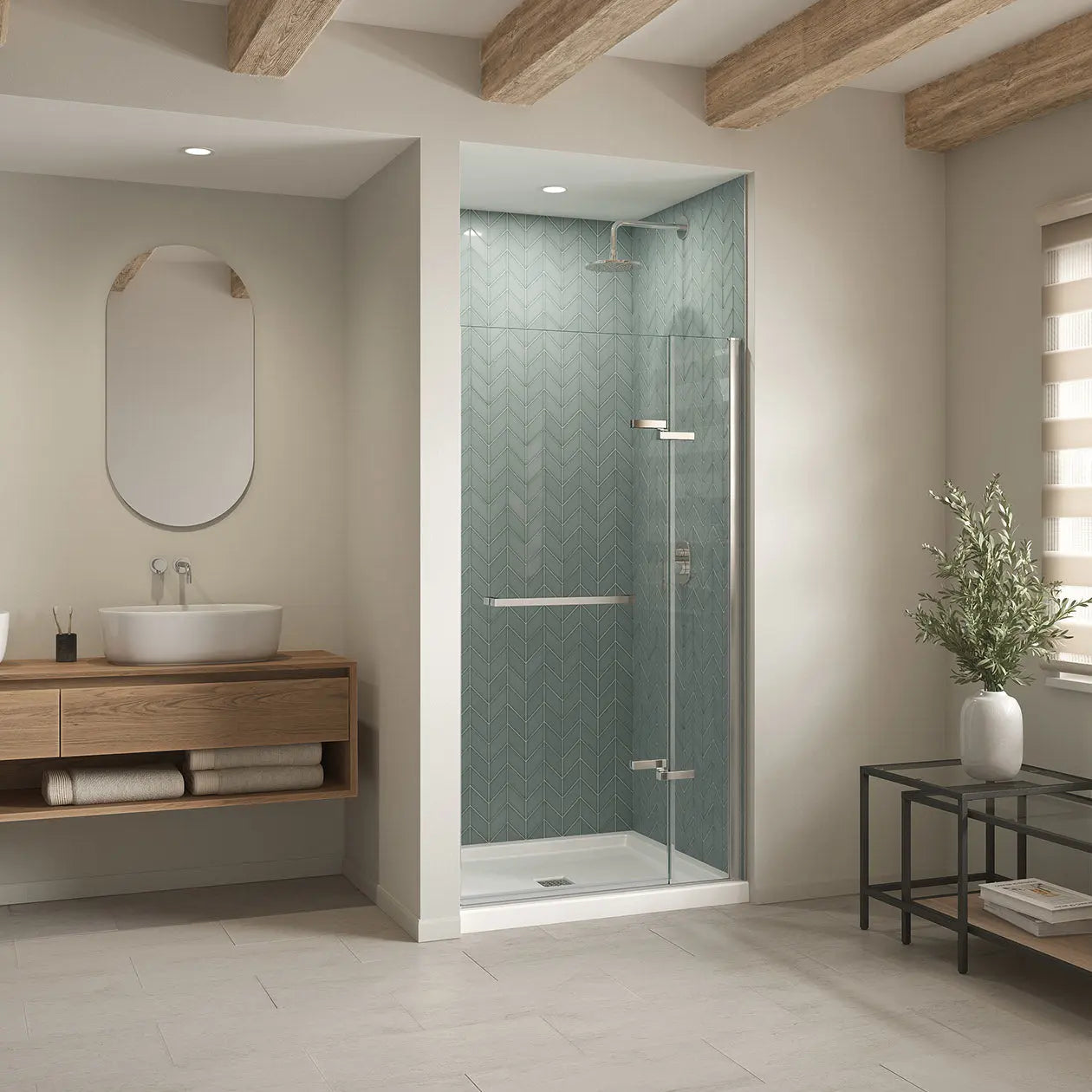 B3Square 4236 Acrylic Alcove Shower Base in White with Center Drain