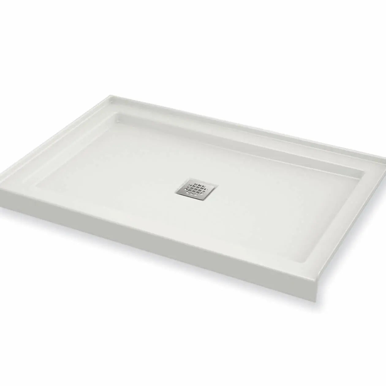 B3Square 4836 Acrylic Alcove Shower Base in White with Center Drain